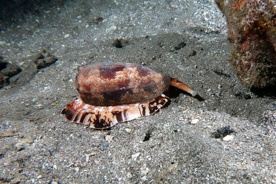 독침을 쏘는 청자고둥이 돌아다니는 건 처음 본다. 맹독성이라 조심해야 한다.