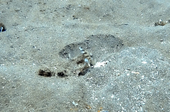 근처 모래바닥에 쉬림프 도비가 있다. 잘 보면 같이 사는 새우도 움직이는 것을 볼 수 있는데 보통 새우들이 겁이 더 많아서 잘 안 보인다.