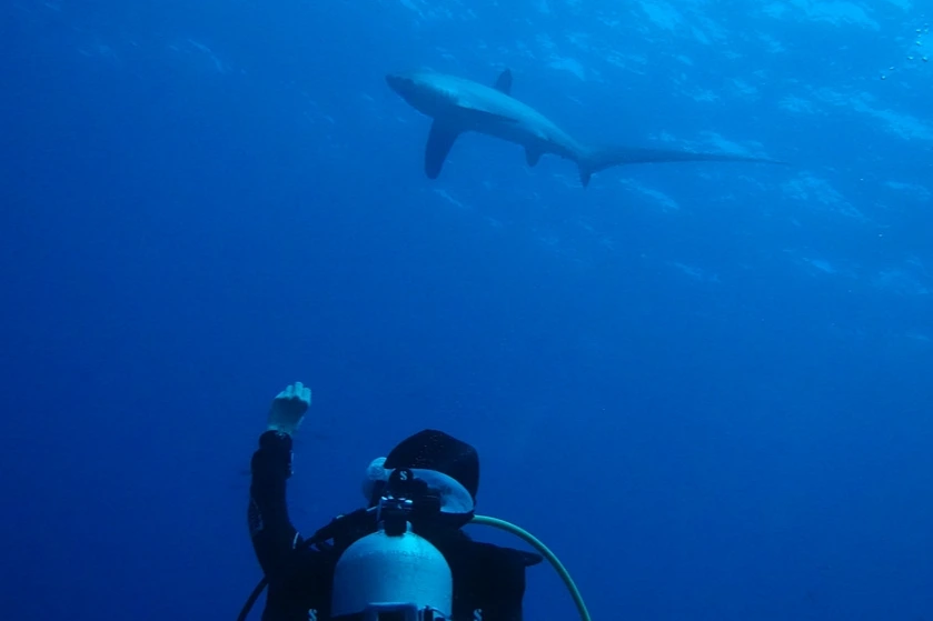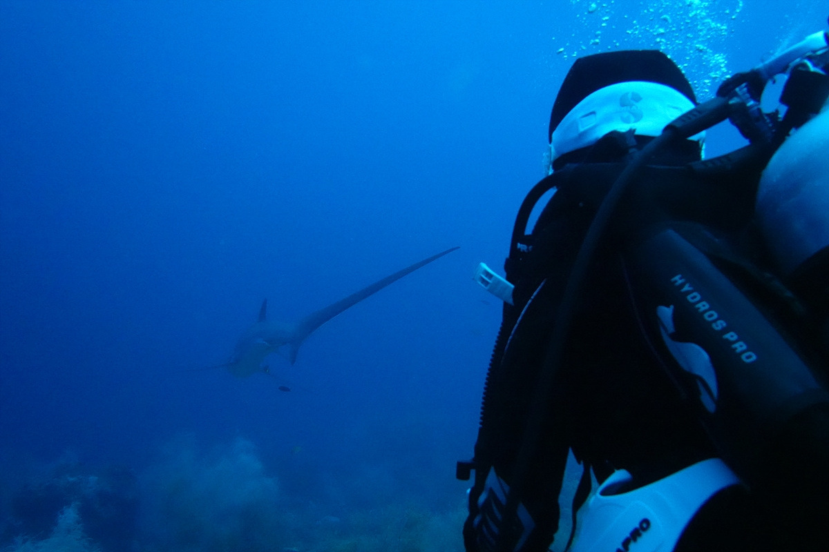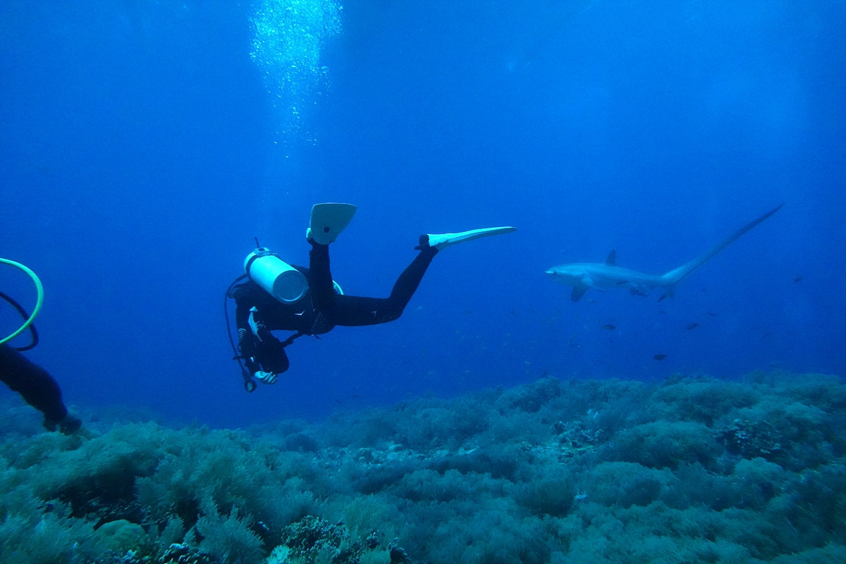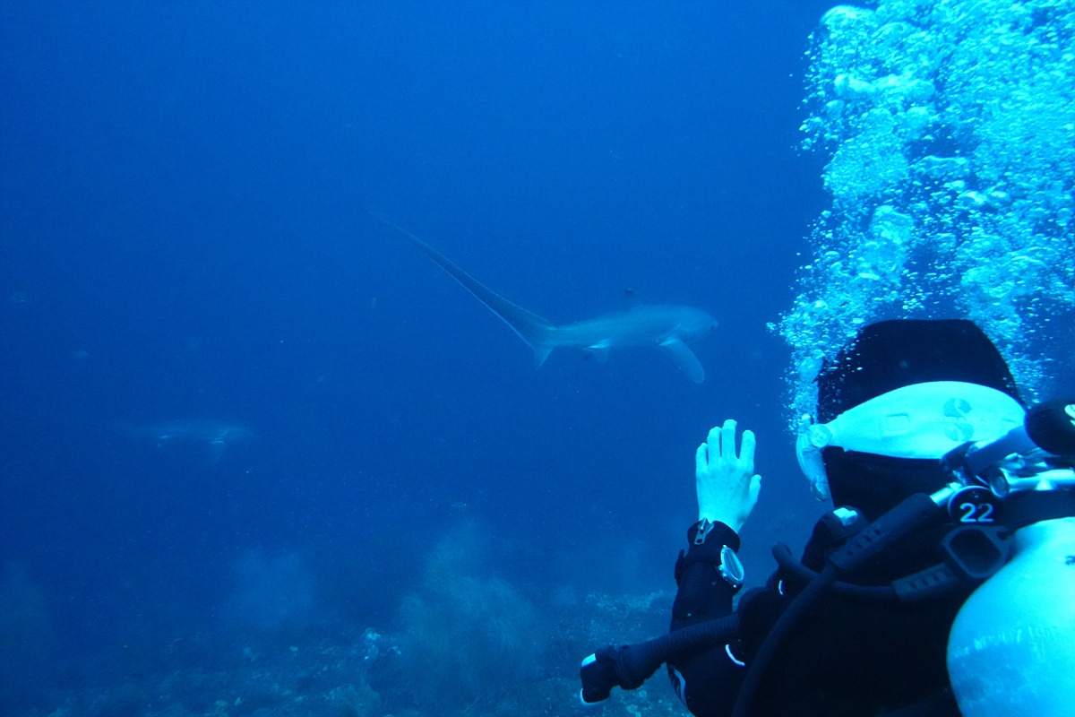 말리파스쿠아 다이빙 둘째 날이다. 말라파스쿠아는 그 수중환경이 좋기도 하지만 세계에서 유일하게 환도상어(thresher shark)를 확실하게 볼 수 있는 곳으로 유명하다. 오늘은 1 다이빙이지만 환도상어를 보러 간다.