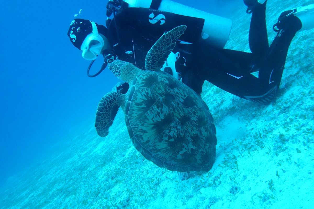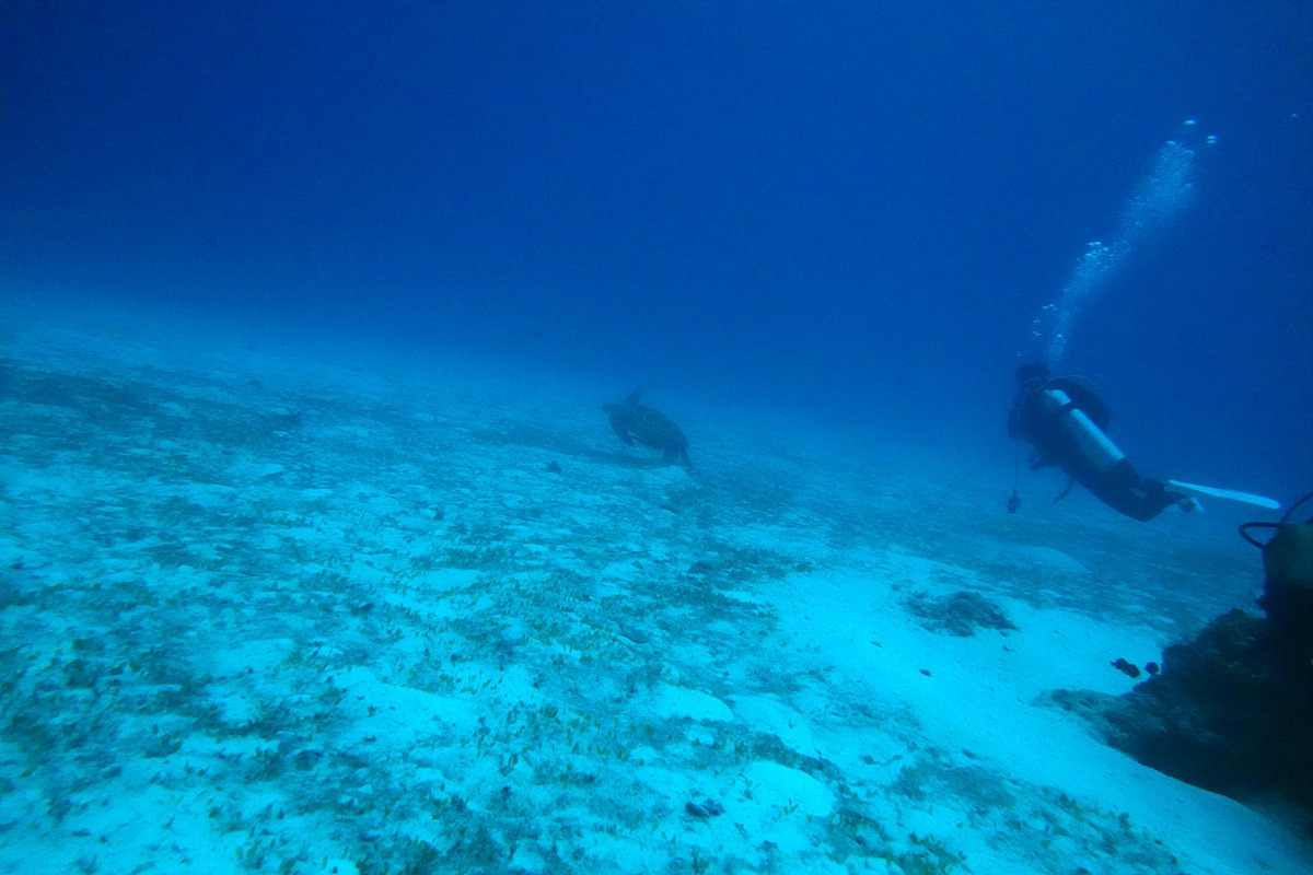 마지막 다이빙은 섬 동쪽의 모래밭이다. 모래밭에 자라는 해초를 먹으러 바다거북들이 많이 오는 곳이다.