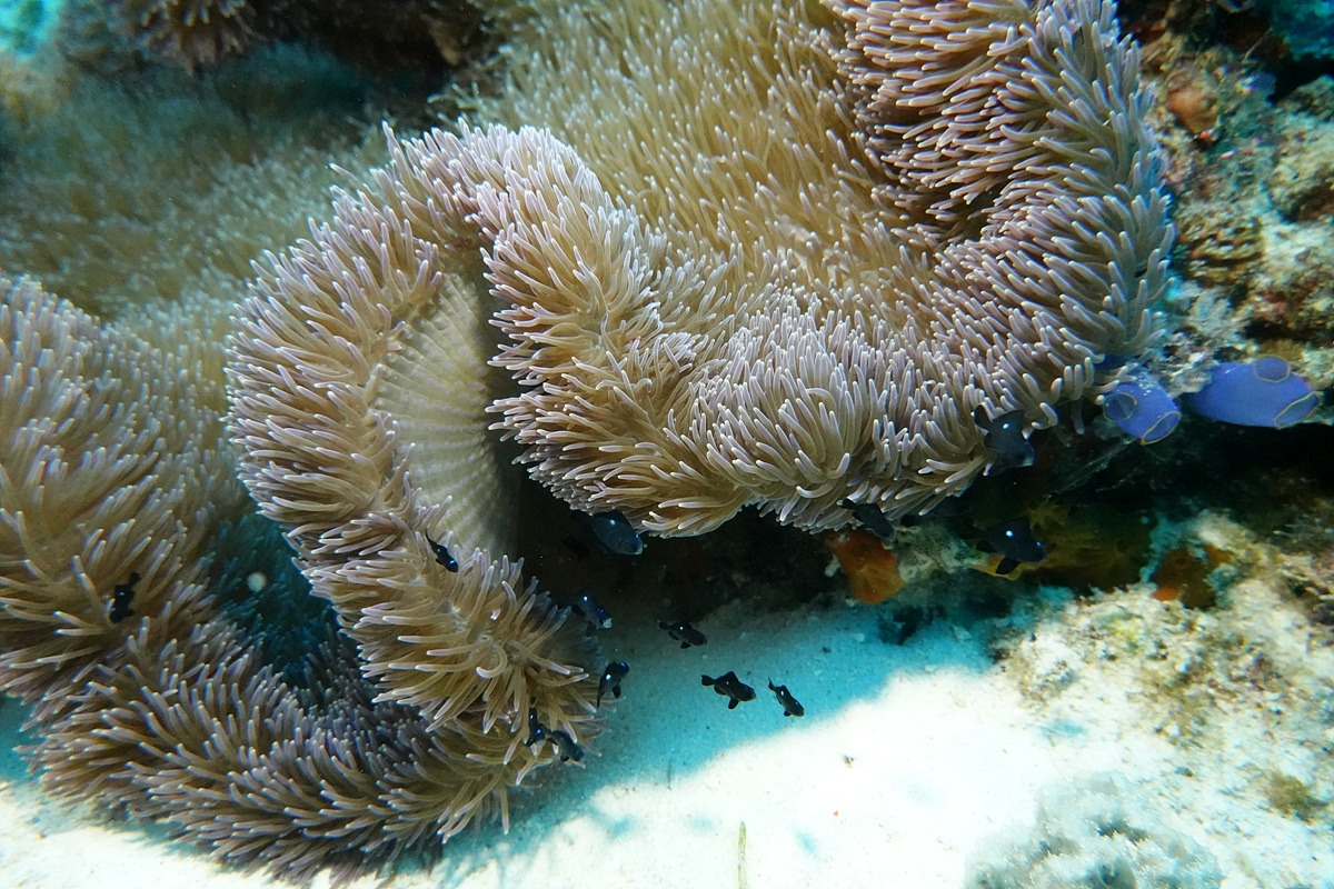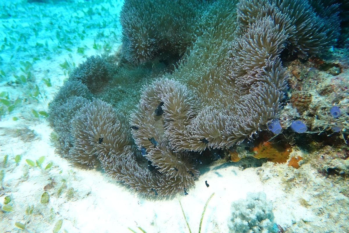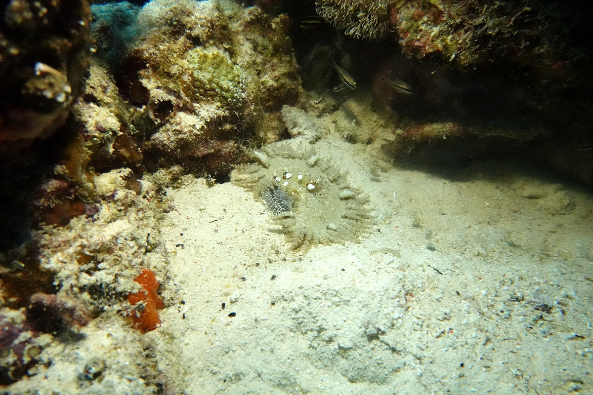 커다란 말미잘이 있다. 이 정도 크기면 뭐라도 살고 있을 것인데...