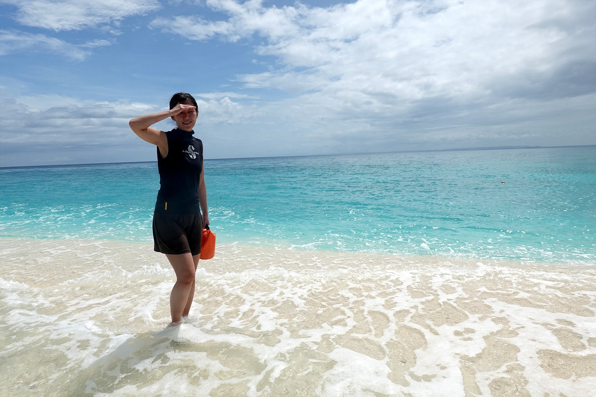 점심 먹고 잠시 시간을 내서 섬을 둘러본다. 먼저 동쪽의 모레사장이다. 물색이 이쁘고 바다 쪽으로 모래사장이 길게 늘어져 있어 사람들이 사진을 많이 찍는 곳이다.