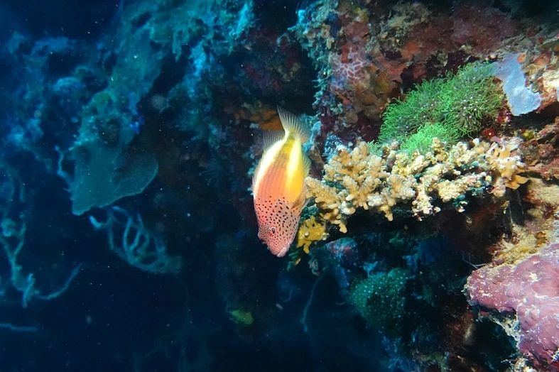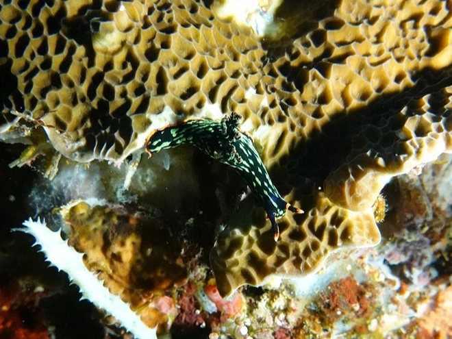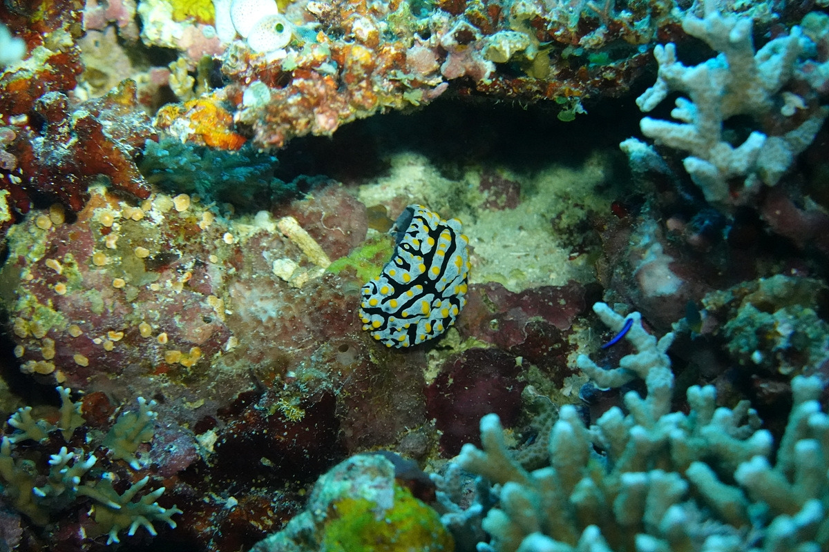 산호가 발달해 있고 다양한 물고기와 누디를 볼 수 있다.