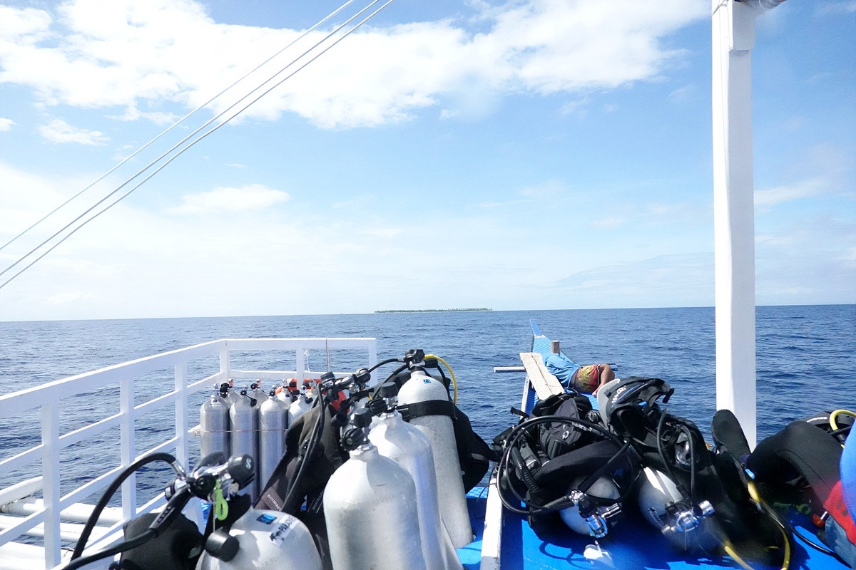 깔랑까만 가는 길 중간에 다이빙을 한 번 하면 수면 휴식 시간을 아낄 수 있기에 키무드숄에서 다이빙을 준비한다. 숄(Shoal)은 깊은 바닷속에서 상대적으로 솟아오른 지형으로 얕은 수심에서 사는 물고기들이 모이는 곳이다.