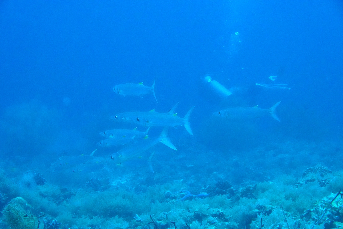 수면에 가깝게 올라가는 녀석들은 수면 위로 점프해서 기생충을 떼어내려고도 한다는데 오늘은 점프하는 녀석은 없었다. 처음에는 모나드숄에서 볼 수 있었던 환도상어가 사라진 후 키무드숄에서 환도상어가 종종 점프를 하는 것을 근처를 지나던 어부가 발견해서 키무드숄이 환도상어 다이빙의 명소가 되었다고 한다.