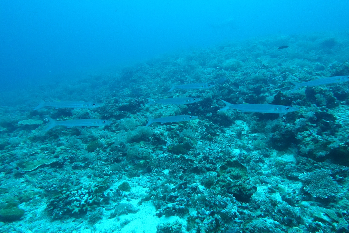 출수하는데 비가 내리기 시작했다. 비를 피해 방카 지붕 아래에서 점심을 먹는다. 운이 좋으면 식사하는 동안에도 점프하는 환도상어들을 볼 수 있다고 하는데 오늘은 없었다.