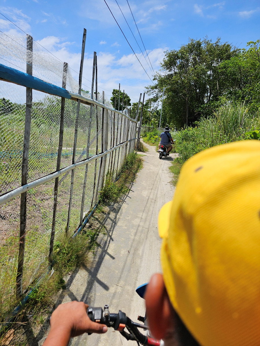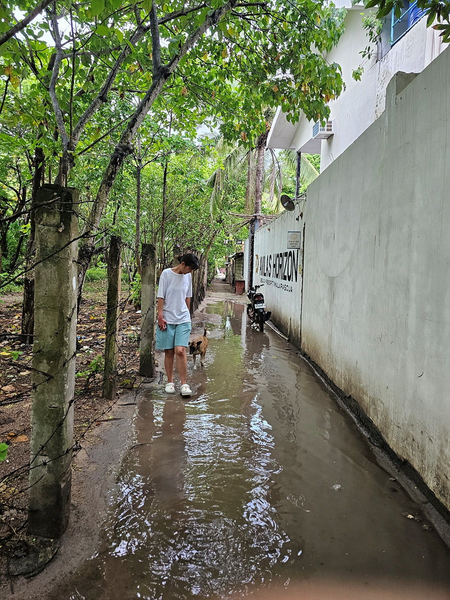 Edem island inn이라는 여관 건물 옆으로 구글 지도에는 나타나지 않은 새로 생긴 길이 있다. 이 길로 걸어가면 노스 비치에 갈 수 있다 하여 걸어가 본다. 새길이라 그런지 포장이 깨끗하게 잘 되어 있다. 말파 내부에는 차가 다니지 않고 대부분 오토바이만 다니기 때문에 길이 좁다. 오토바이로 옮길 수 없는 짐은 배로 옮긴다.