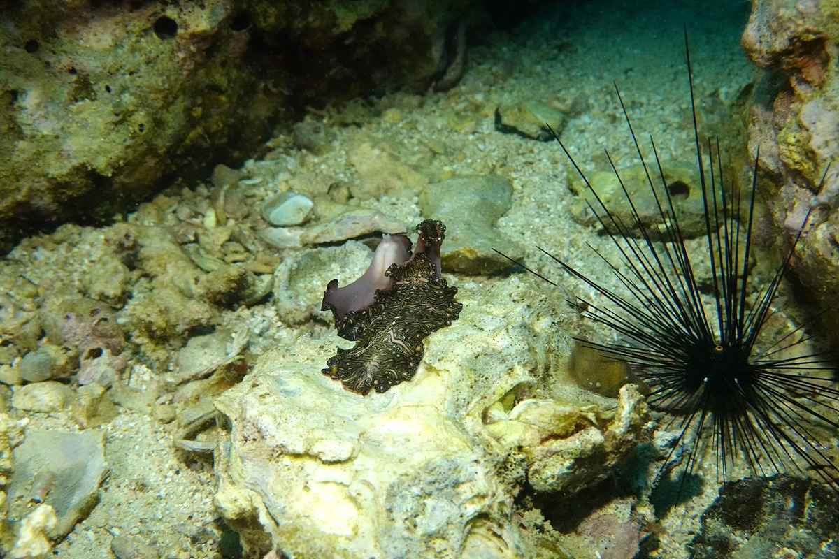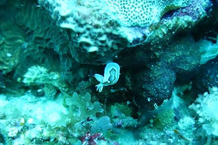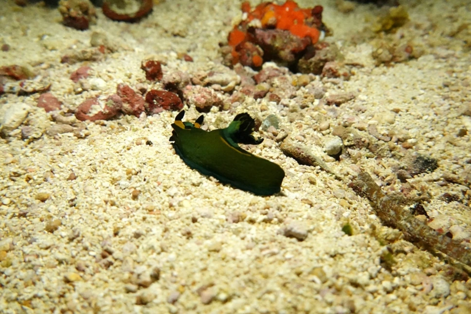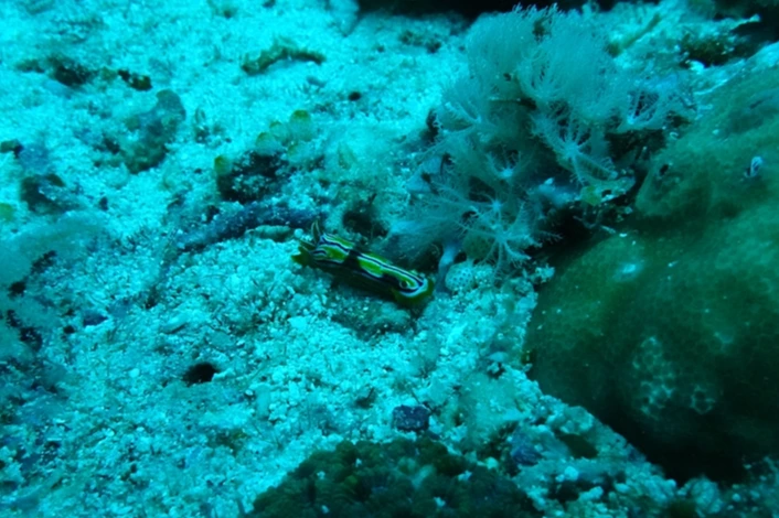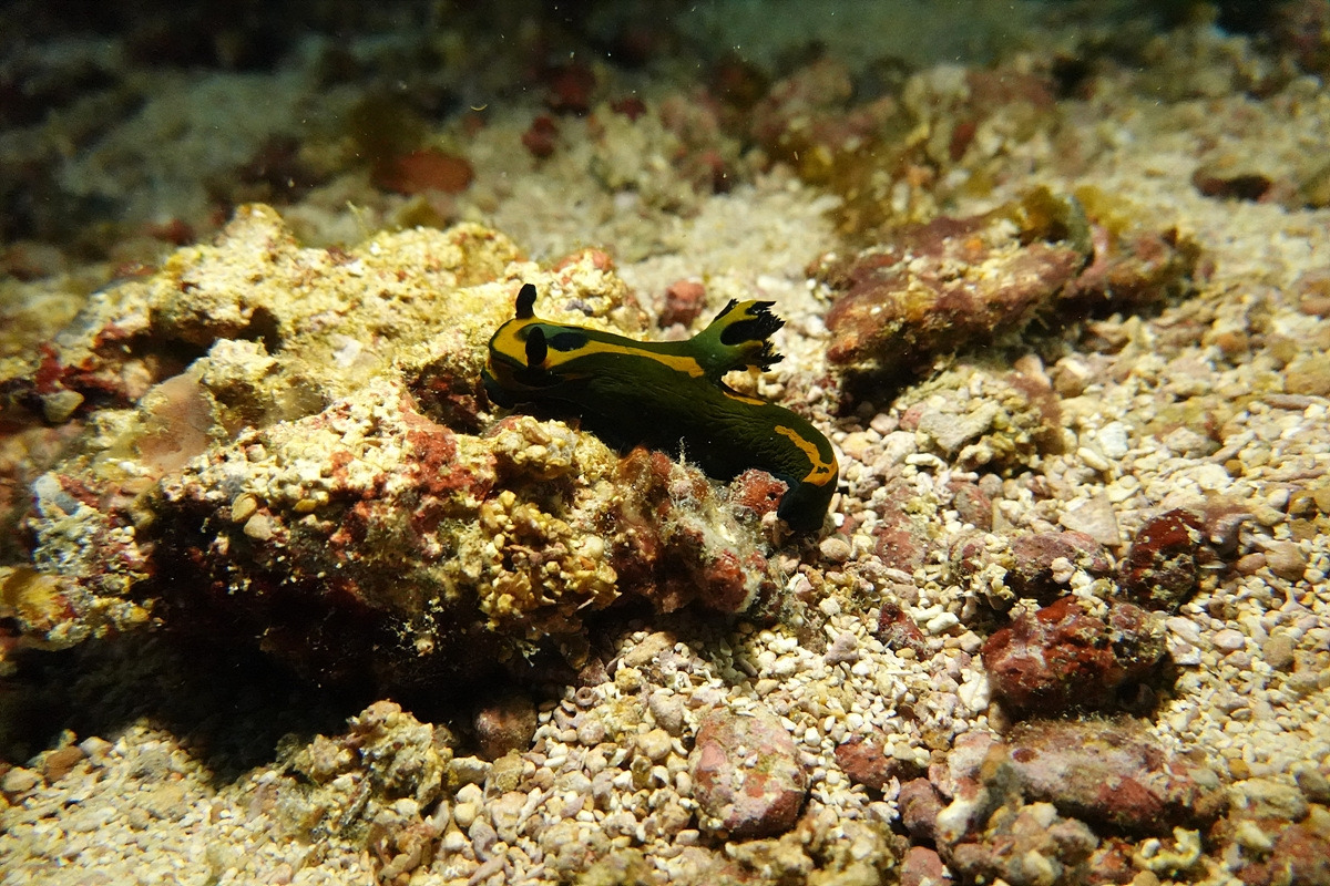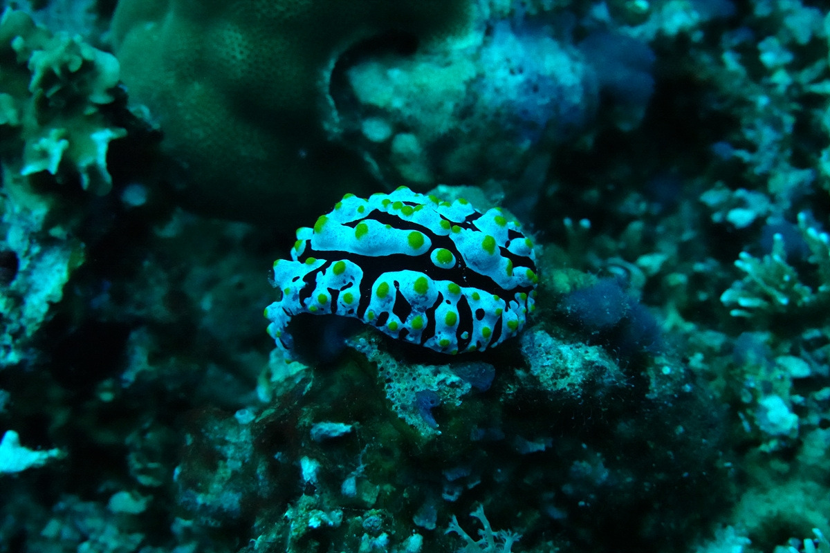 누디 중에서도 특이한 색을 띠는 Tambja 종류를 만났다. 이 녀석도 큼직하다. 색이 참 독특하다.