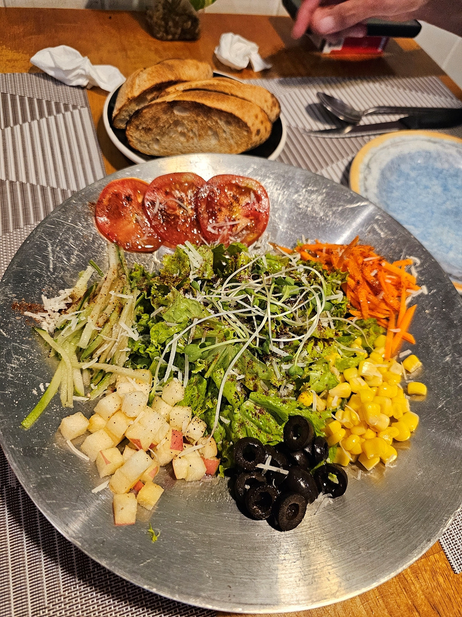 꽤 훌륭한 샐러드와 제대로 된 화덕 피자가 나왔다. 일단 샐러드는 딱 지니님 입맛에 맞는 훌륭한 샐러드다.