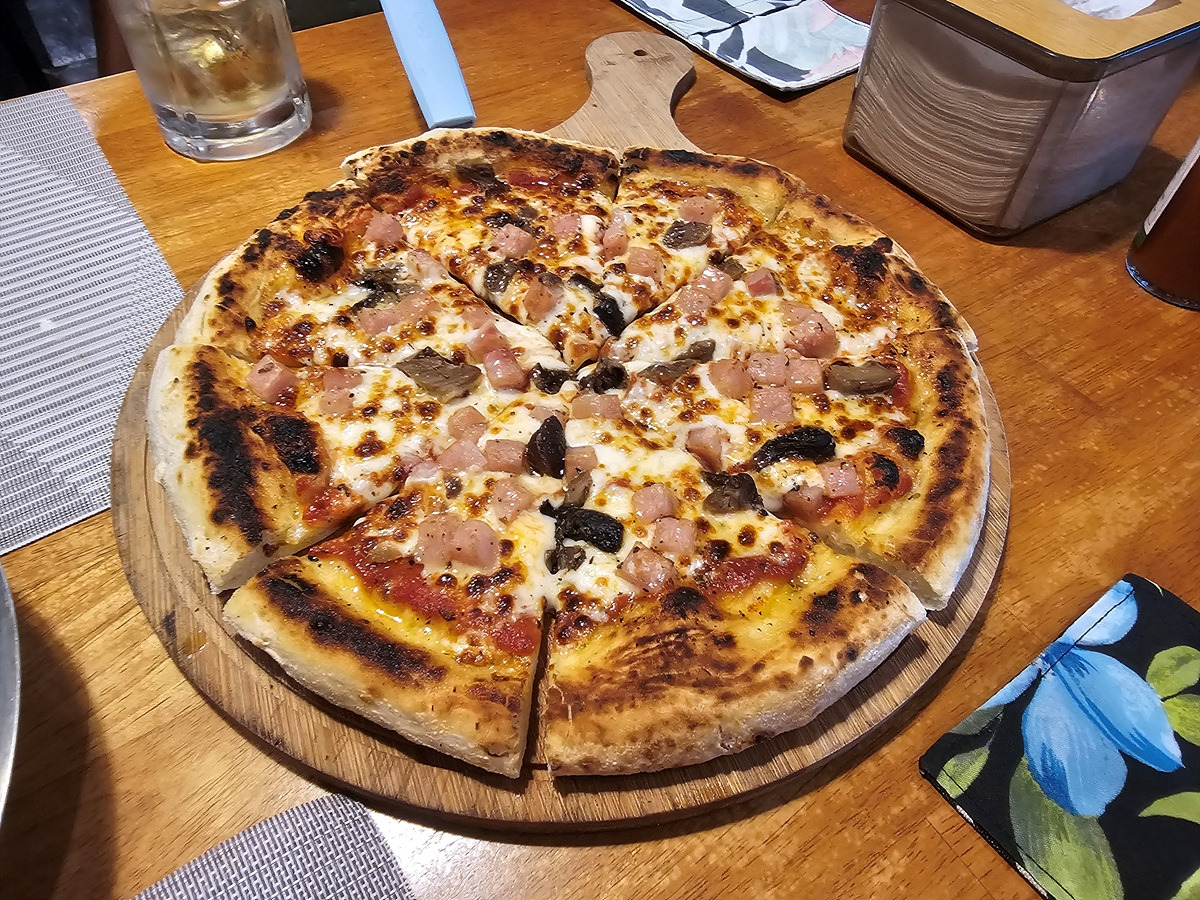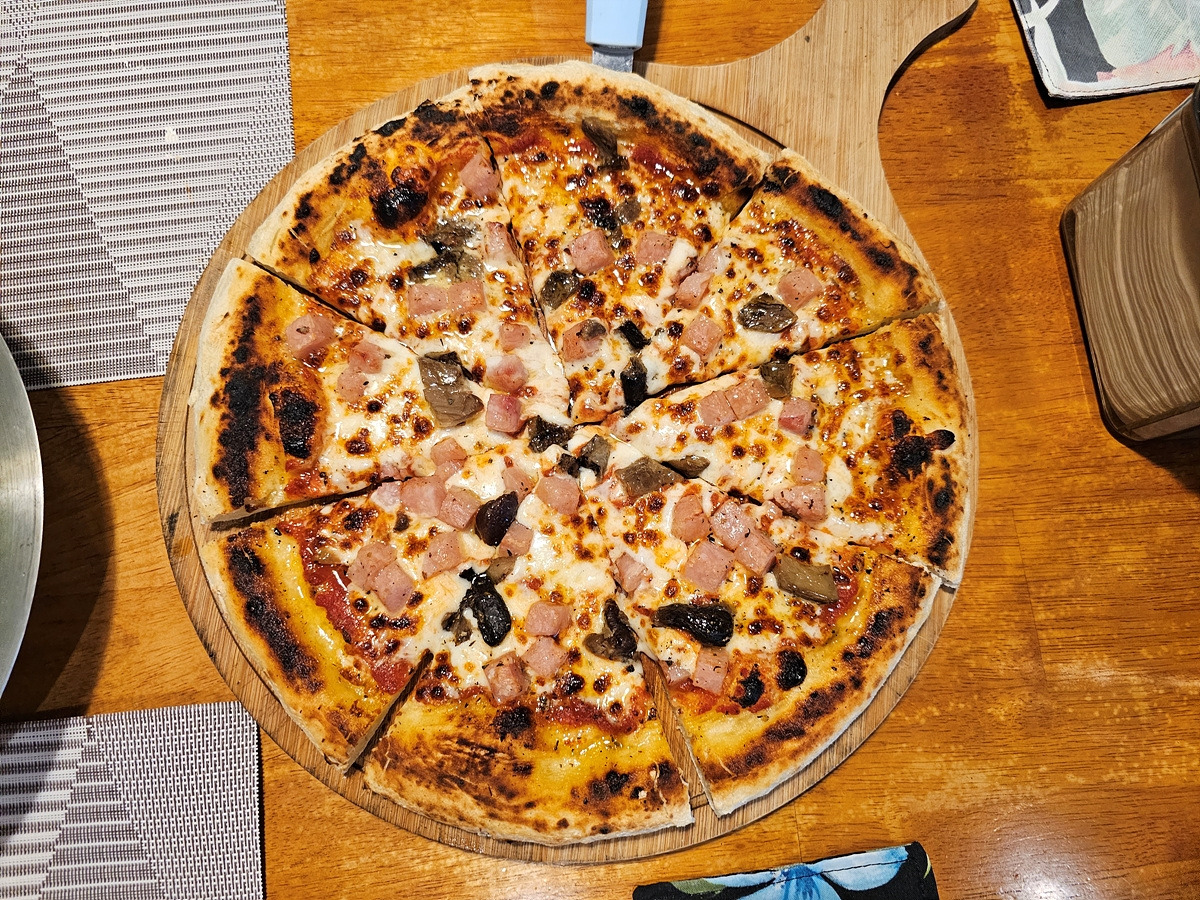 아침 먹고 출발했지만 3시간 정도 걸려 도착했으니 점심시간이 지났다. 체크인을 했으니 슬슬 배가 고프다. 숙소 바로 근처에 피자를 파는 로컬 음식점이 있어 가본다. 어두컴컴해서 문 닫은 것 같아도 오픈 사인이 켜져 있으니 들어가 보았다.