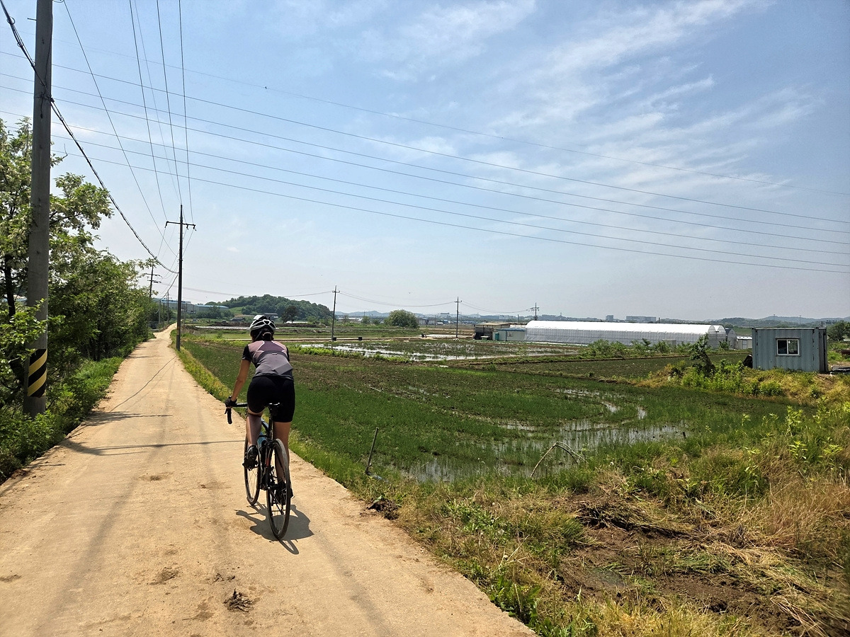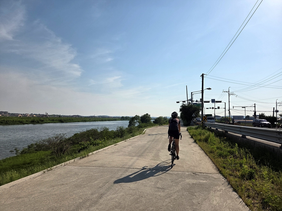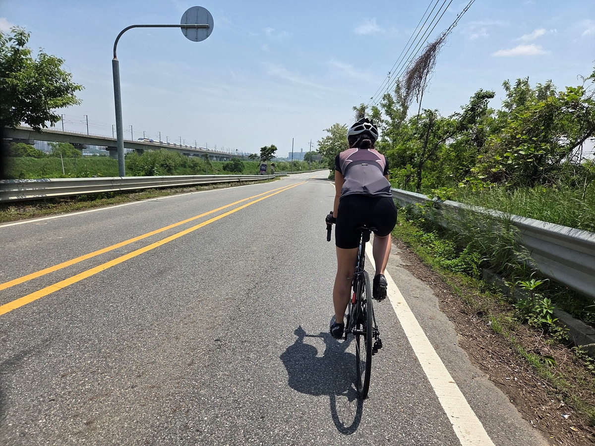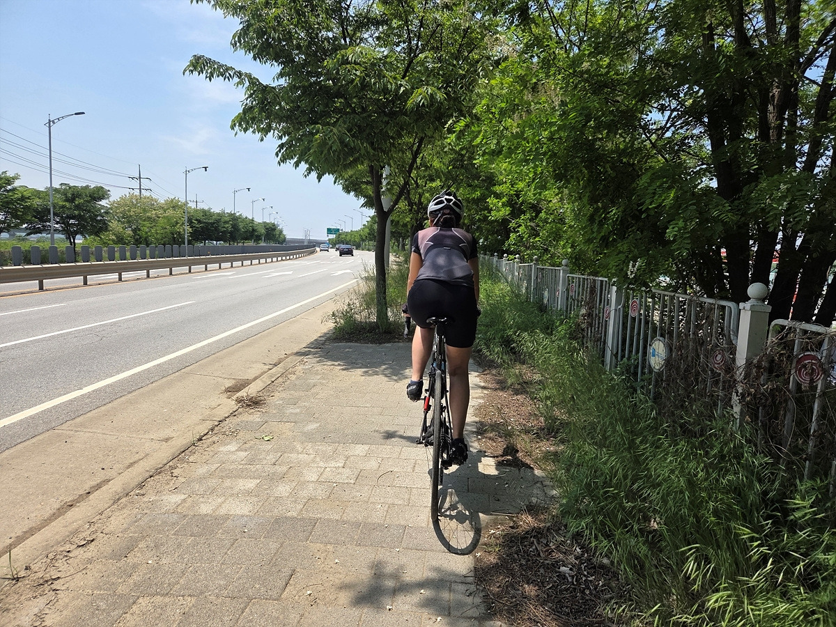 보행교는 동연교차로에서 끝난다. 여기서 좌회전해서 고속철도선과 진위천을 따라 나란히 달린다. 가끔 나는 큰 소리는 KTX가 지나가는 소리다. 차들이 조금 달리긴 하지만 쭉쭉 뻗은 도로는 자전거로 달리기 좋다.