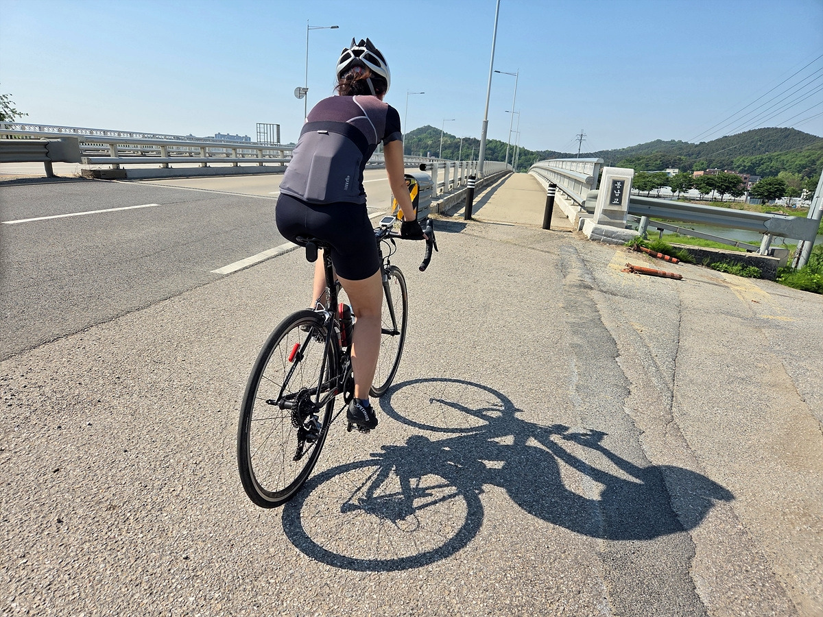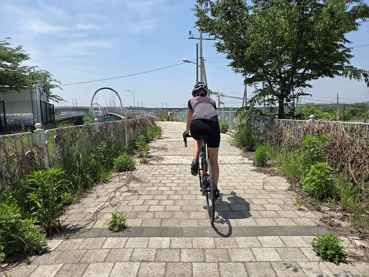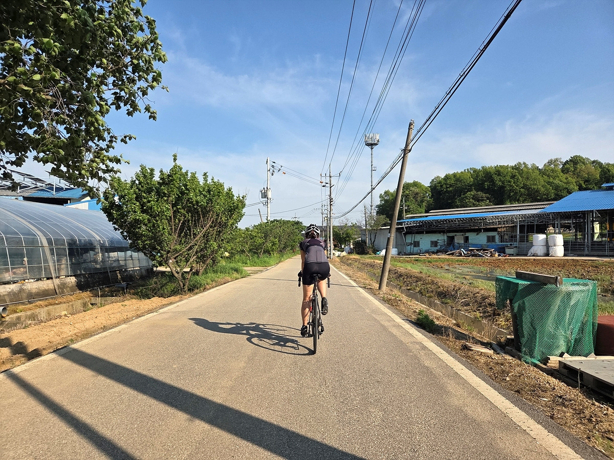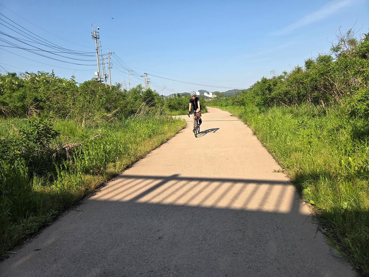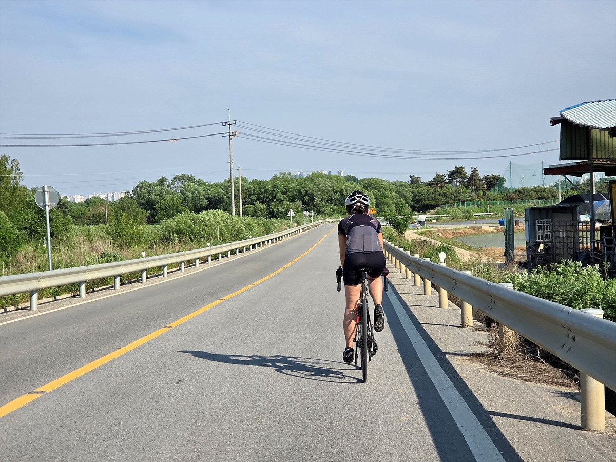 보행교는 동연교차로에서 끝난다. 여기서 좌회전해서 고속철도선과 진위천을 따라 나란히 달린다. 가끔 나는 큰 소리는 KTX가 지나가는 소리다. 차들이 조금 달리긴 하지만 쭉쭉 뻗은 도로는 자전거로 달리기 좋다.