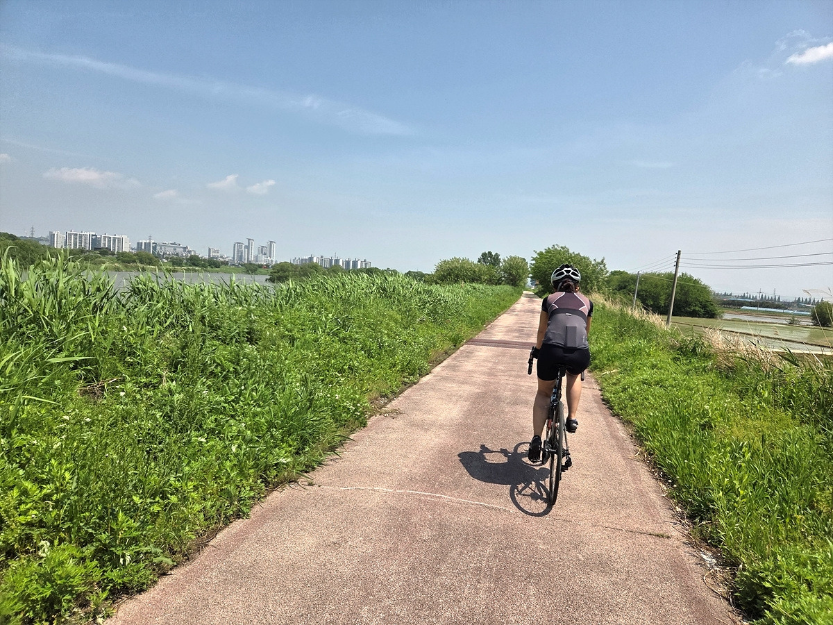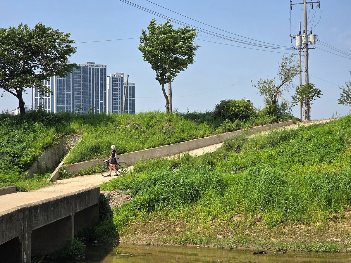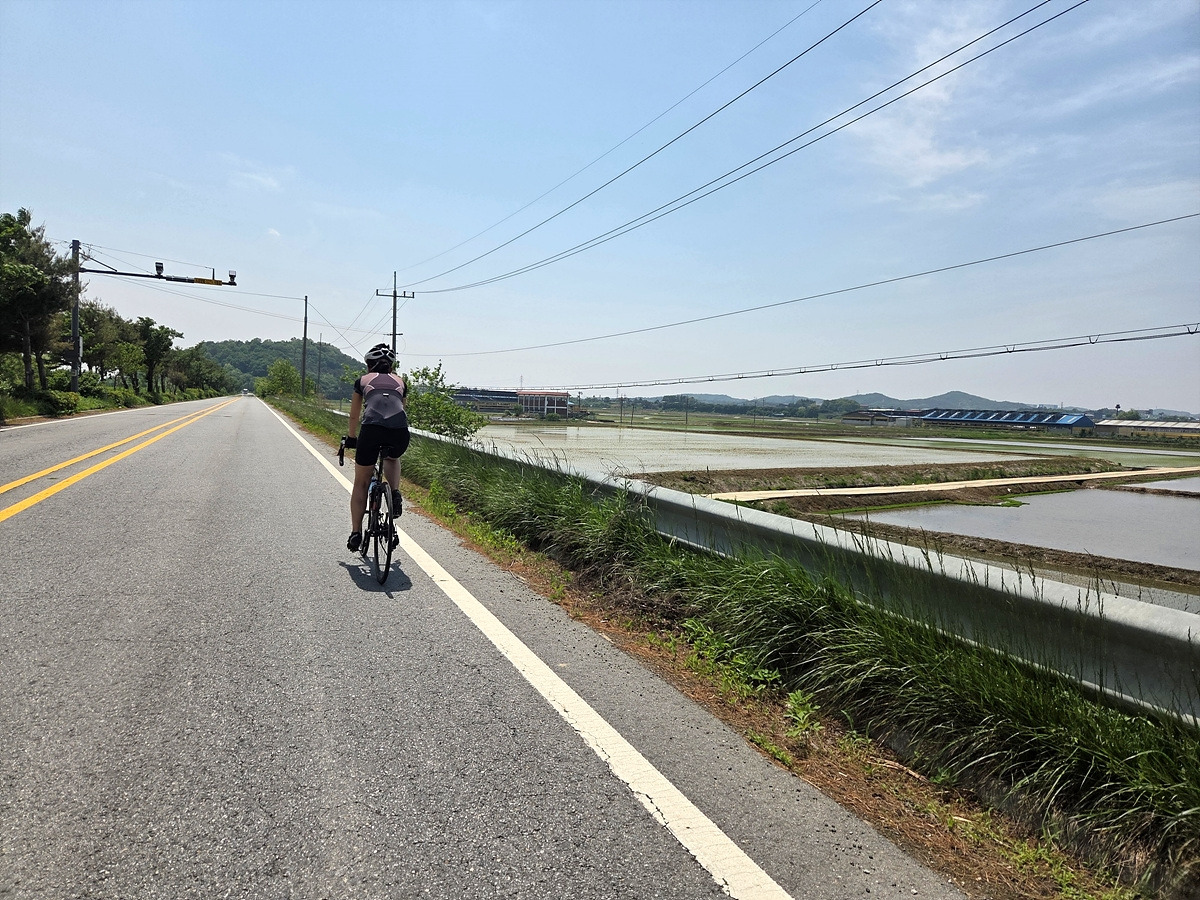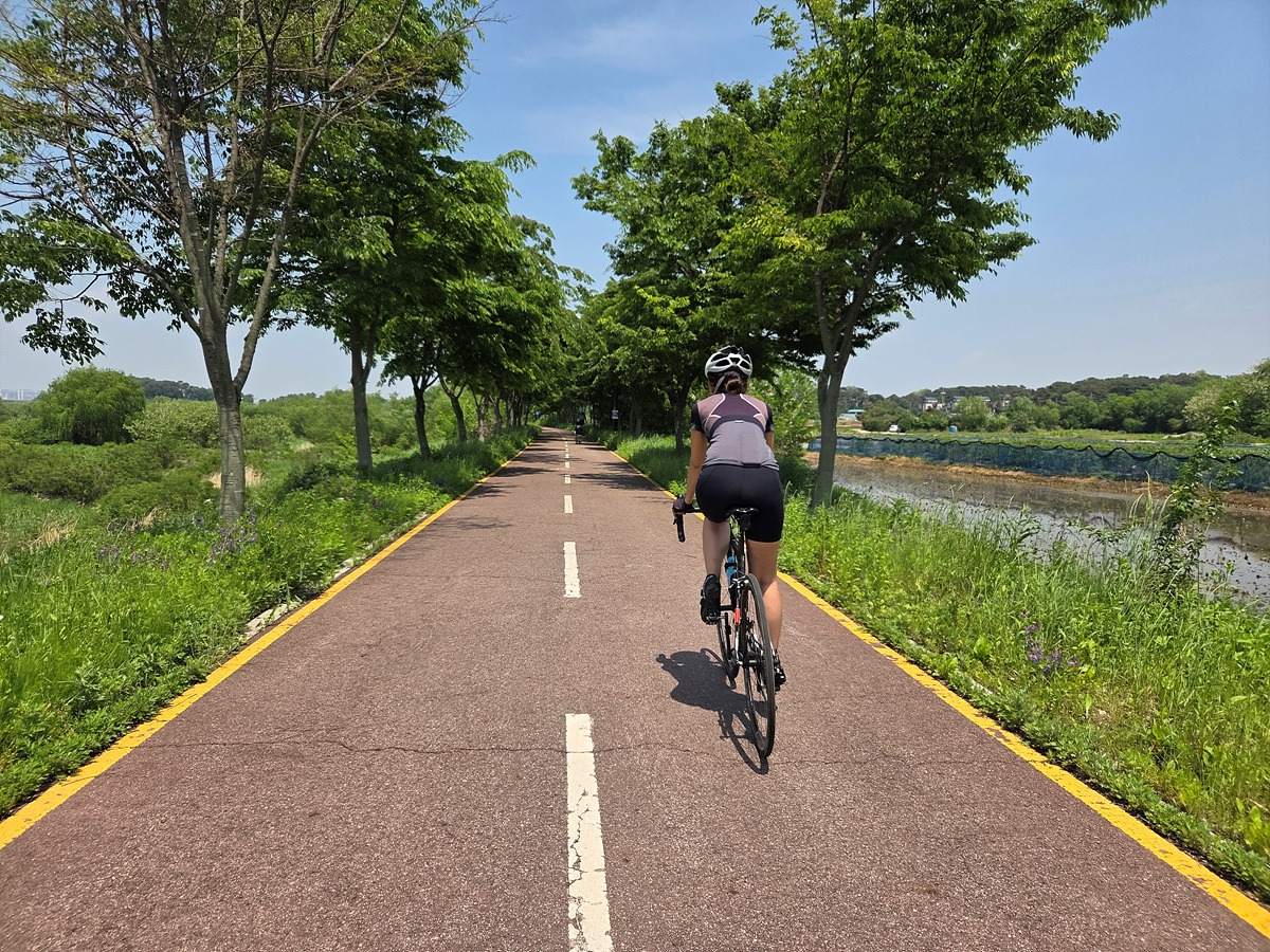 보행교는 동연교차로에서 끝난다. 여기서 좌회전해서 고속철도선과 진위천을 따라 나란히 달린다. 가끔 나는 큰 소리는 KTX가 지나가는 소리다. 차들이 조금 달리긴 하지만 쭉쭉 뻗은 도로는 자전거로 달리기 좋다.