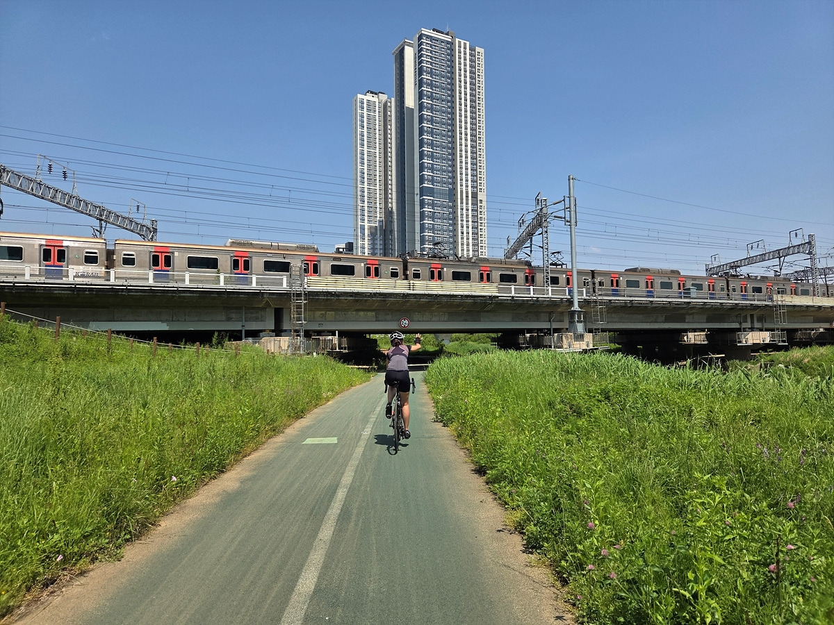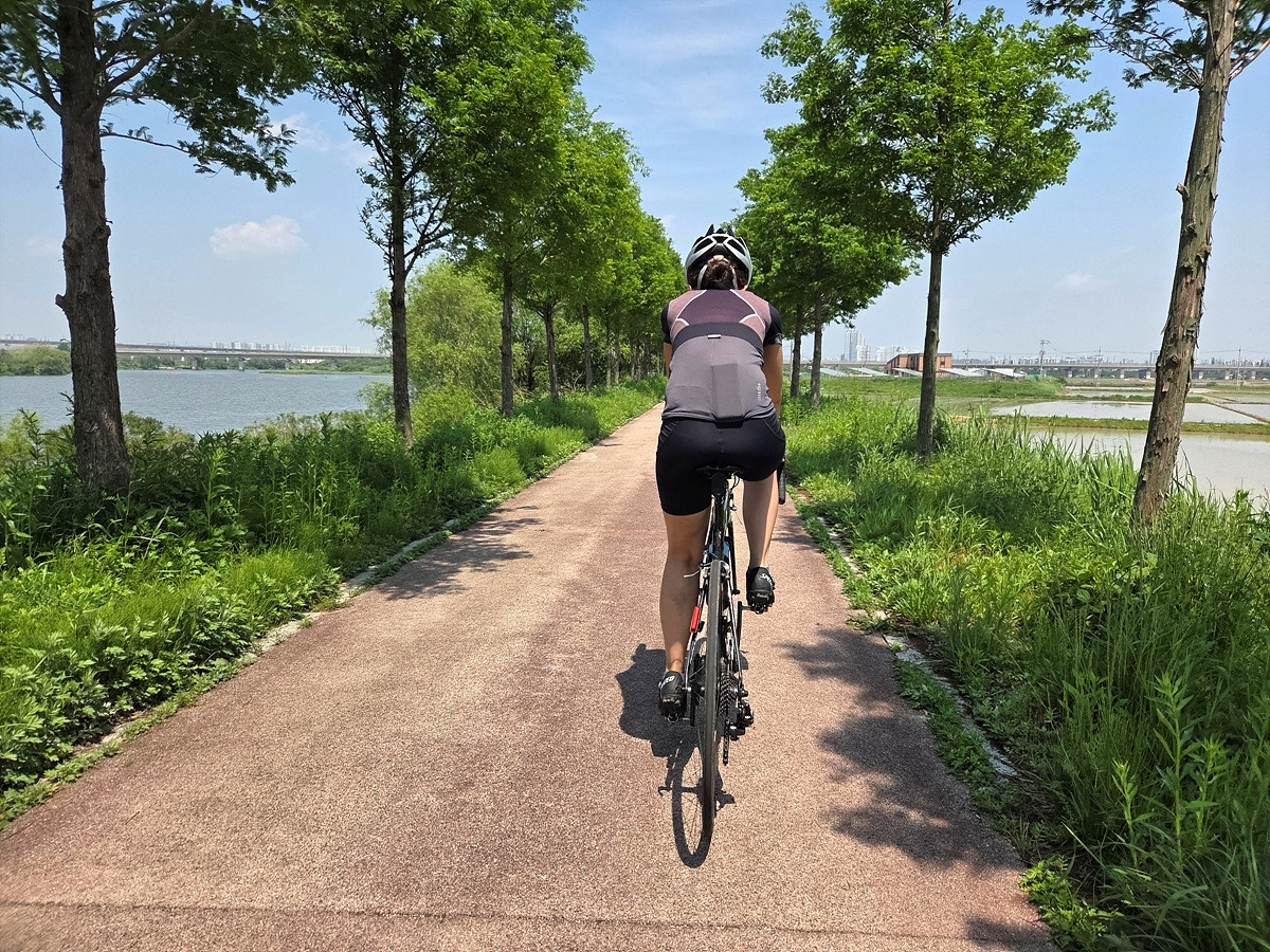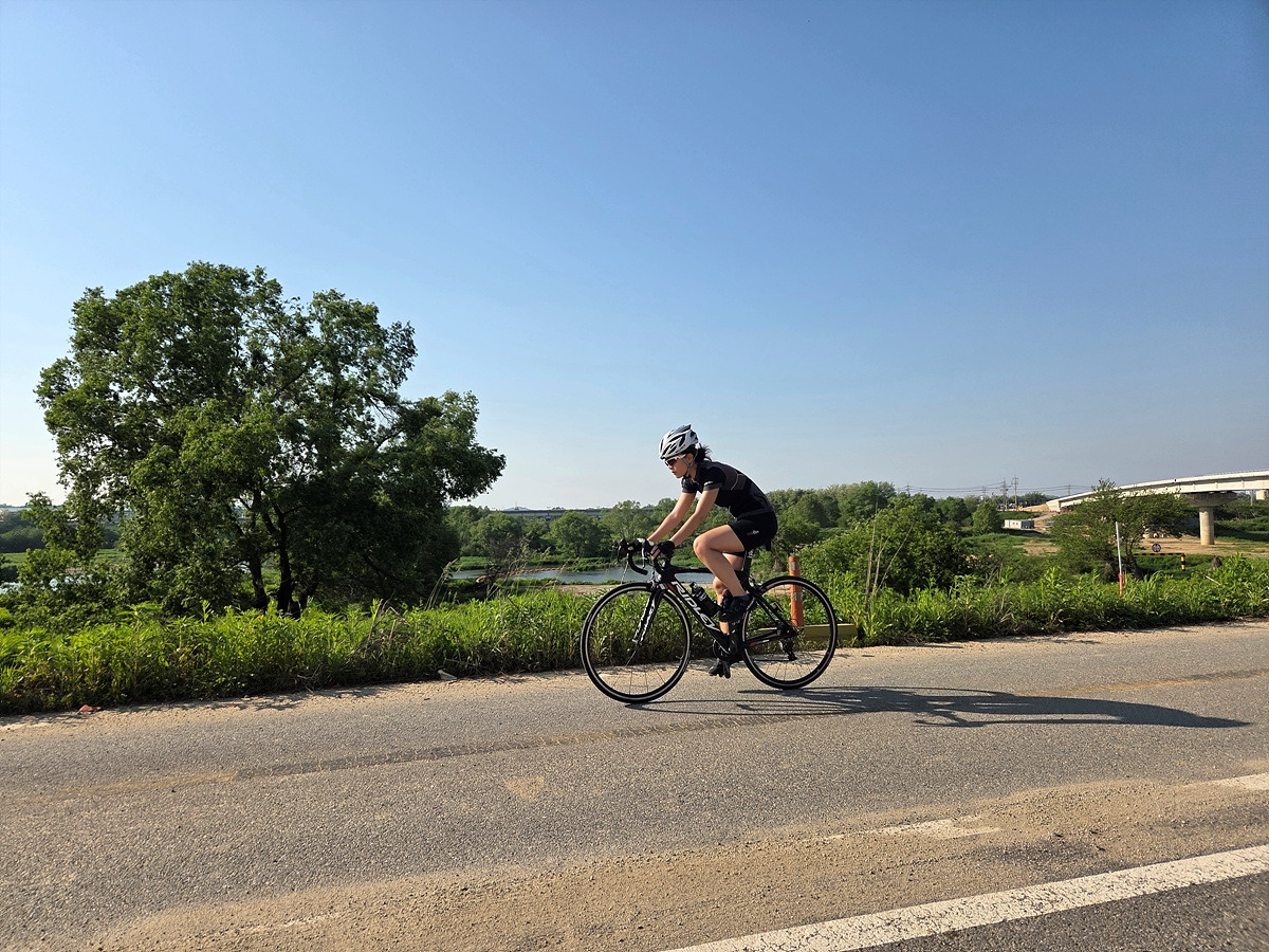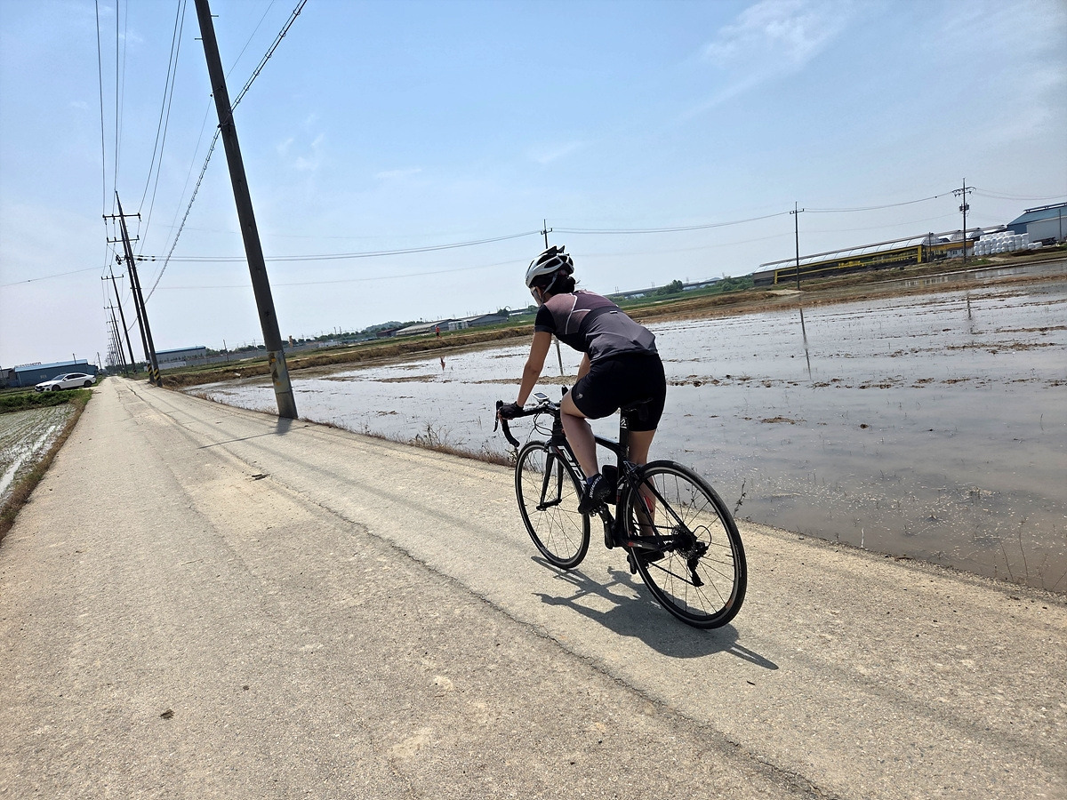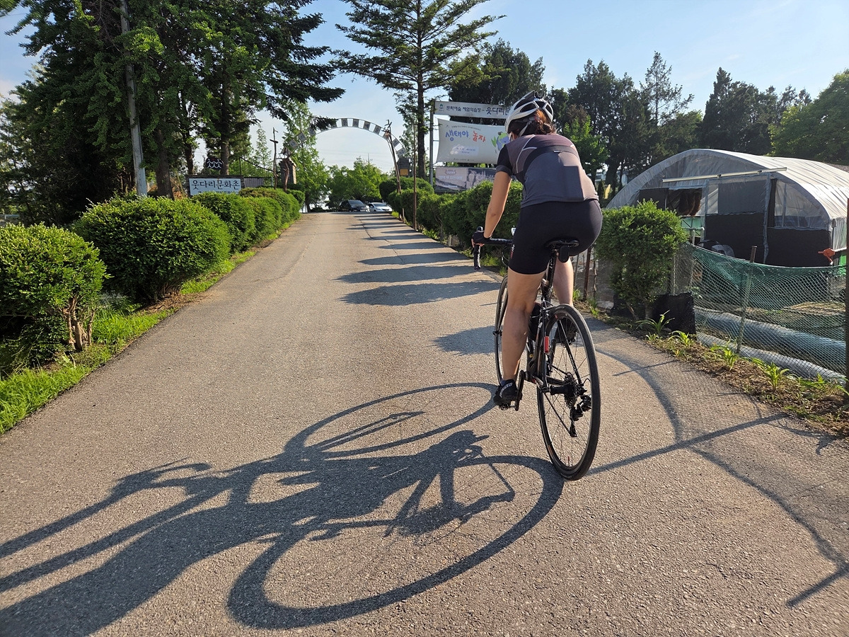 보행교는 동연교차로에서 끝난다. 여기서 좌회전해서 고속철도선과 진위천을 따라 나란히 달린다. 가끔 나는 큰 소리는 KTX가 지나가는 소리다. 차들이 조금 달리긴 하지만 쭉쭉 뻗은 도로는 자전거로 달리기 좋다.