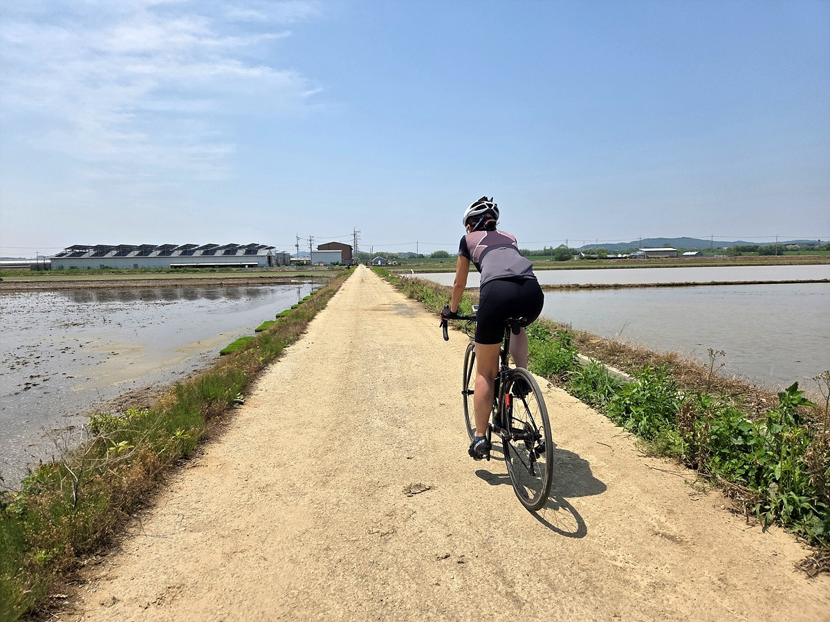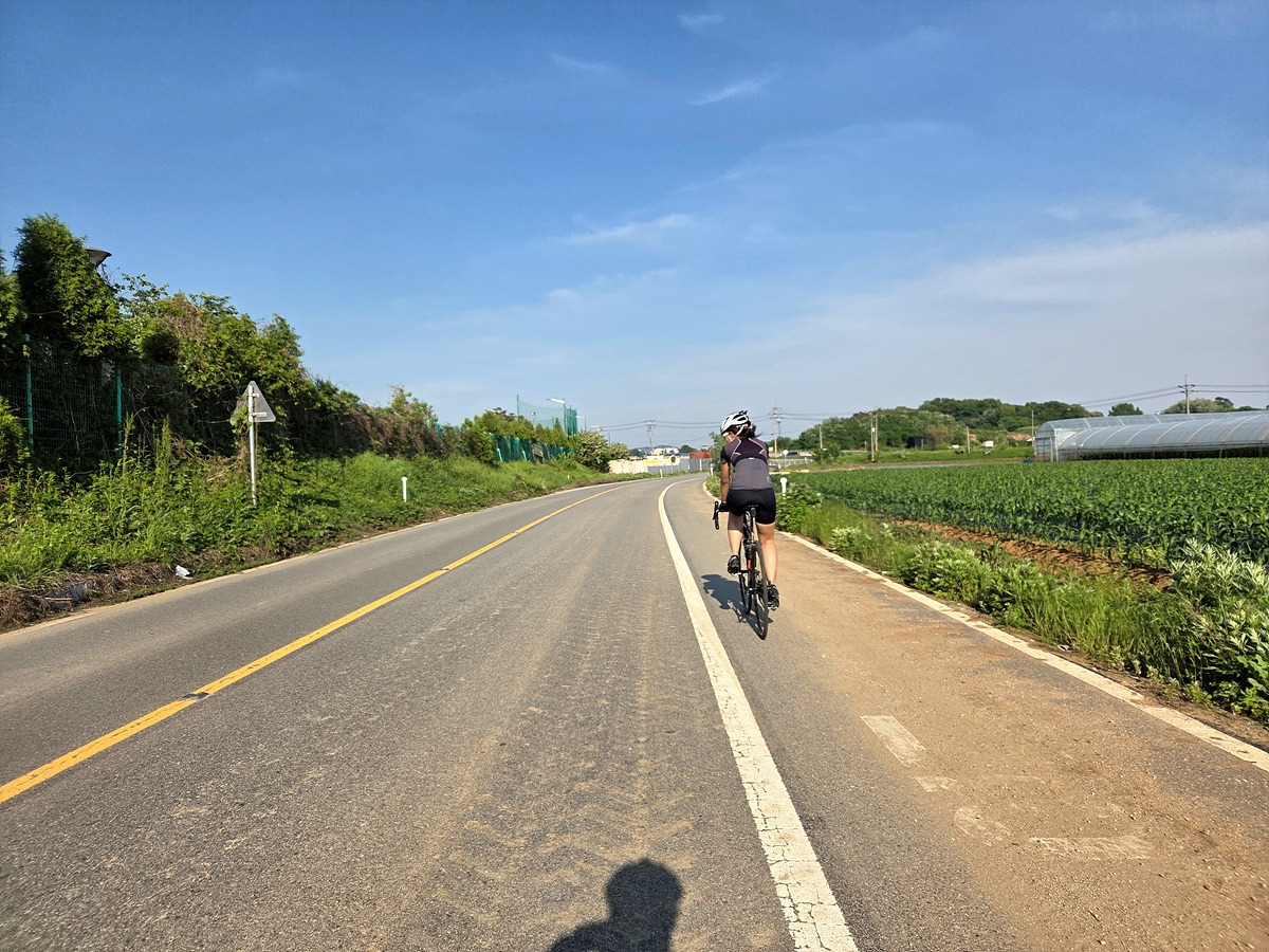 앞에 보이는 큰 농장을 지나면 사거리에서 좌회전하면 된다. 농로가 큼직하고 쭉 뻗어있어 길 찾기가 어렵지 않다.