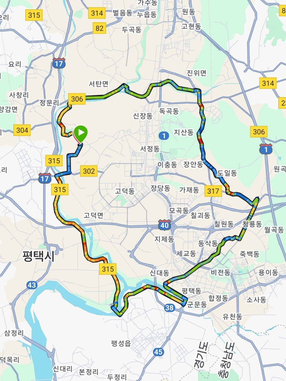 처음에는 원곡면사무소에 주차하고 경부고속도로 안성휴게소 옆으로 돌아가려고 했는데 출발지를 바꾸고 코스를 조금 줄인 것이 악수가 되어버렸다. 장안동으로 단축해서 가는 구간이 전부 공사 중이라 지나가는데 고생한다.