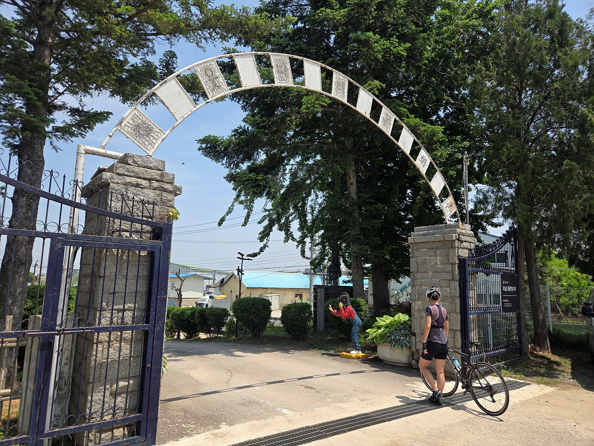 초등학교를 고쳐만든 곳인 만큼 여기저기 학교의 느낌이 많이 살아있다. 정문으로 나가서 출발한다.