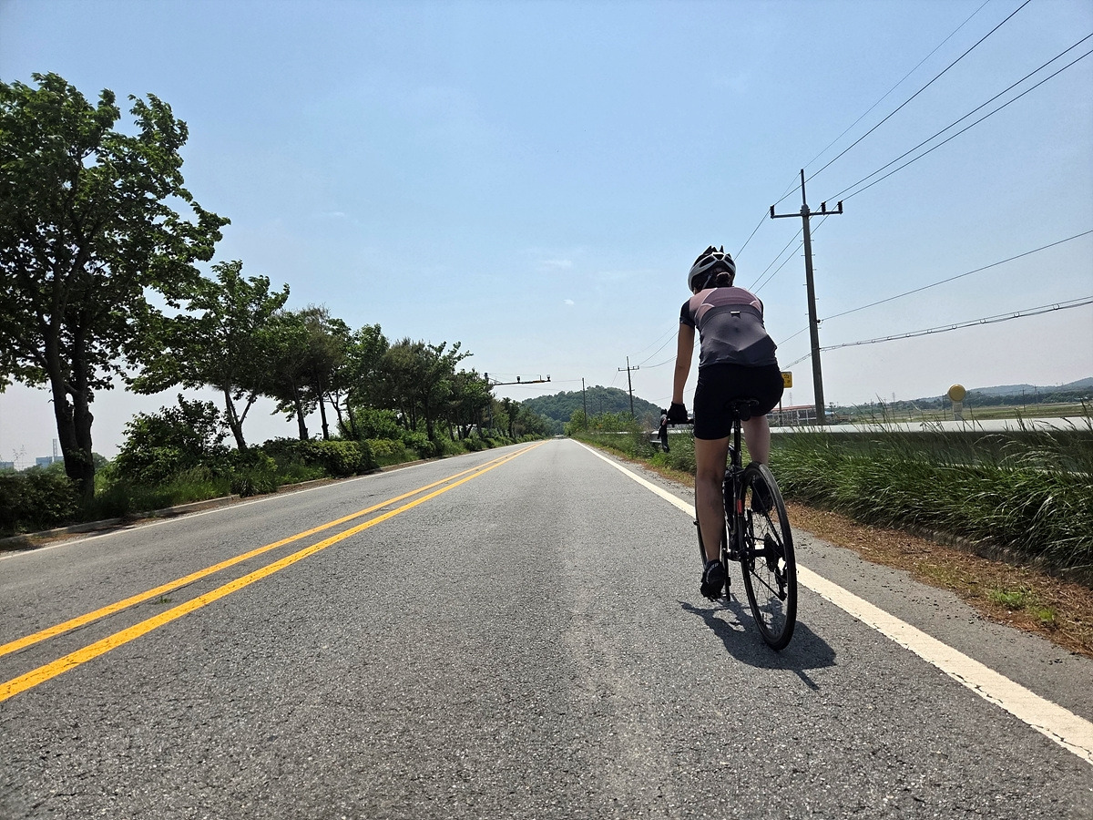 길 옆에 자전거길이 언뜻언뜻 보이는데 일단 도로로 달리다가 팽성대교 바로 근처에서 자전거길로 빠진다. 굳이 빠지지 않고 차도를 이용해서 팽성대교로 올라가도 된다.