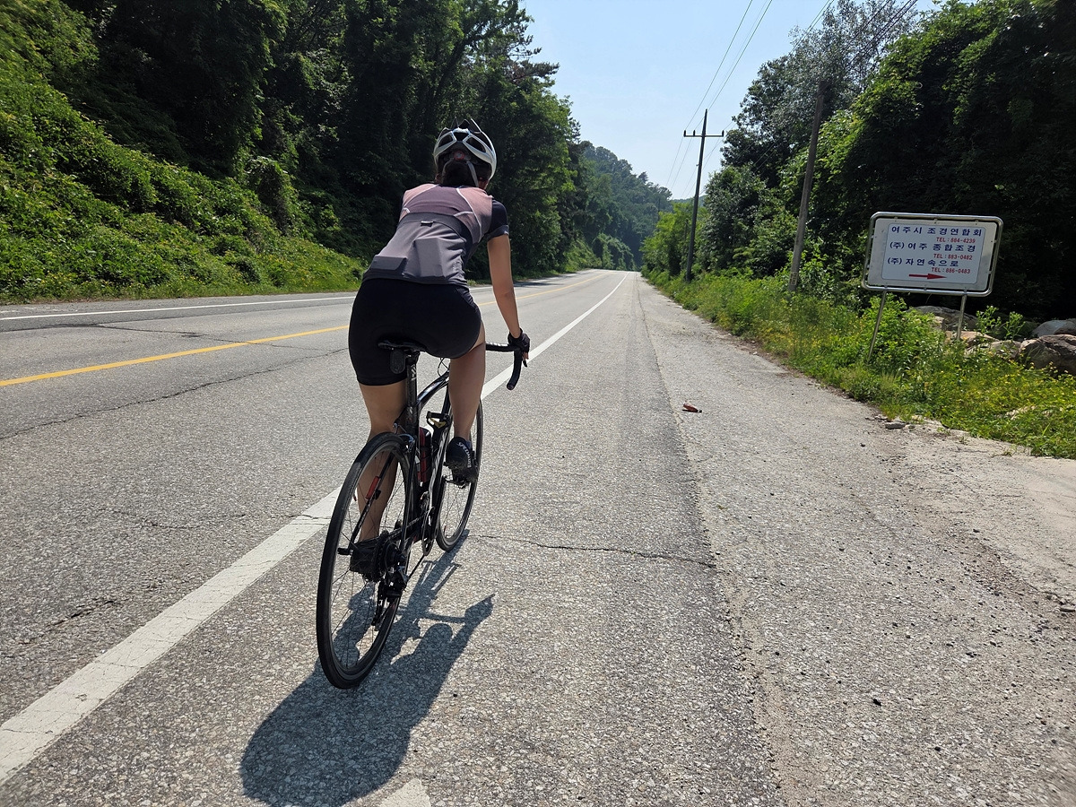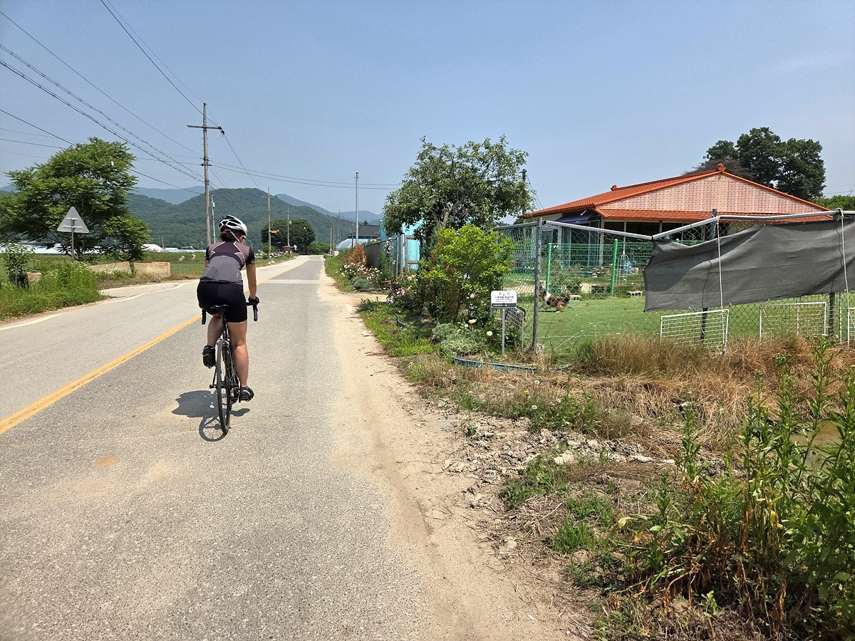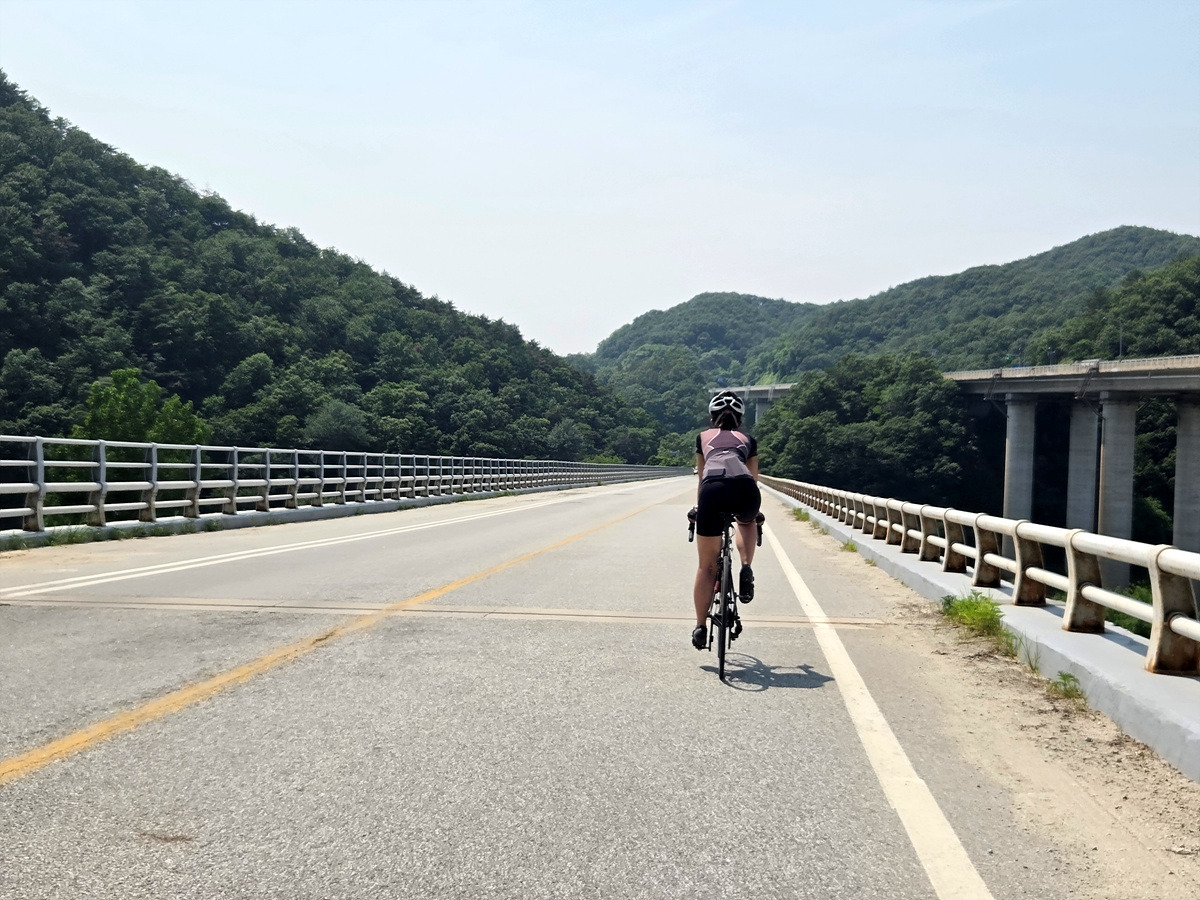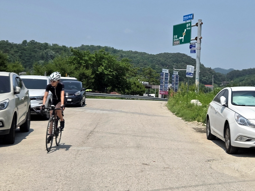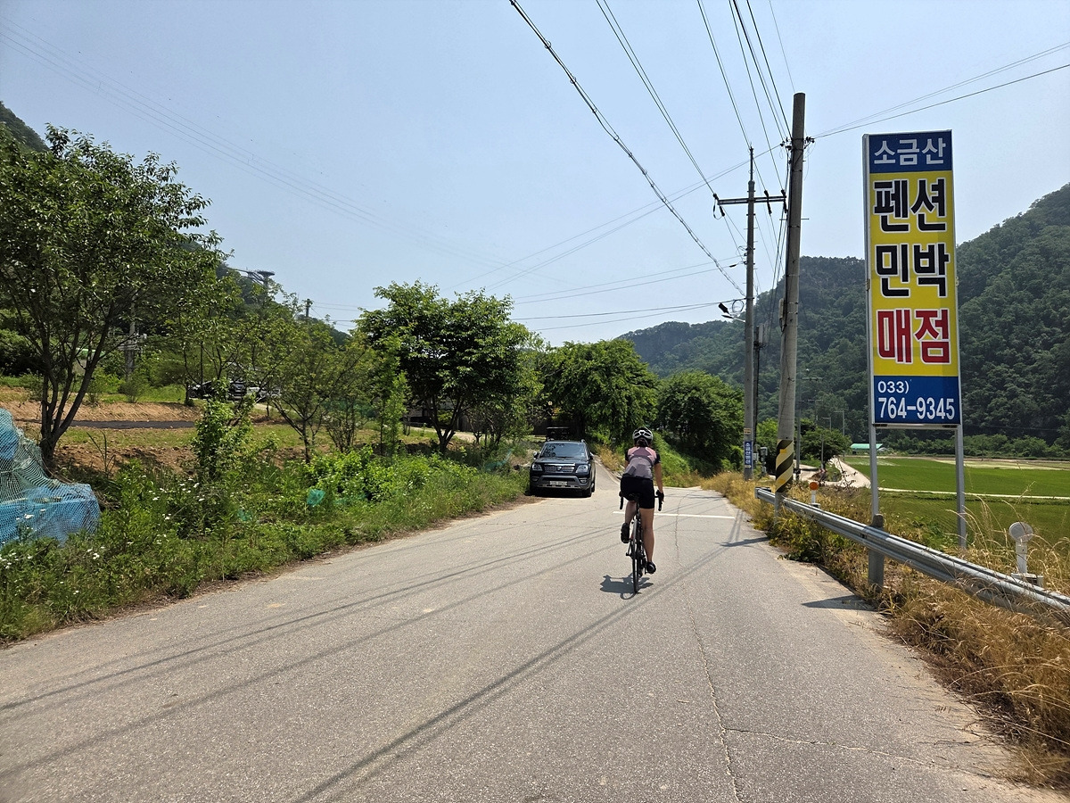 49번 도로는 꽤 넓은 길인데 장거리를 가는 차들은 영동고속도로로 가버리고 이 길로는 한적한 부론면 쪽으로나 갈 수 있기 때문에 차량 통행이 적다. 더군다나 섬강 자전거길은 남한강 자전거길과 연결되는 구간이 태풍에 박살 난 이후로 전혀 복구를 안 하고 있기 때문에 나중에라도 도로로 빠져나가야 한다. 그러니 우리도 도로로 달린다.