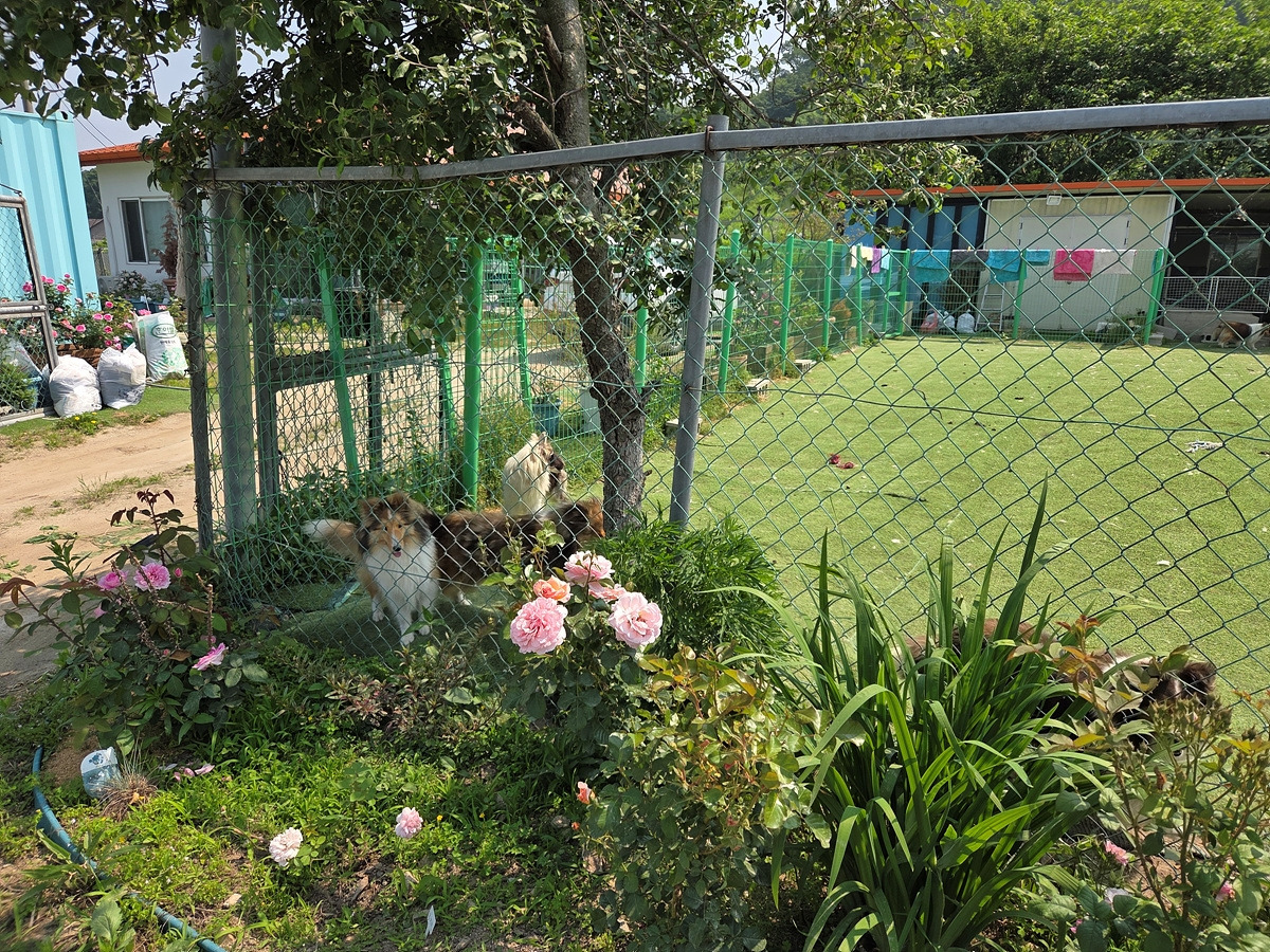 달리다가 아침 식사를 하기로 한 식당이 있었는데 못 보고 지나쳤다. 나는 멈췄는데 지니님은 한참을 달리다가 되돌아온다. 멈춰서 지니님을 기다리는 곳이 마침 개들이 바글거리는 집이라 여러 마리가 날 보고 짖느라 정신이 없다.