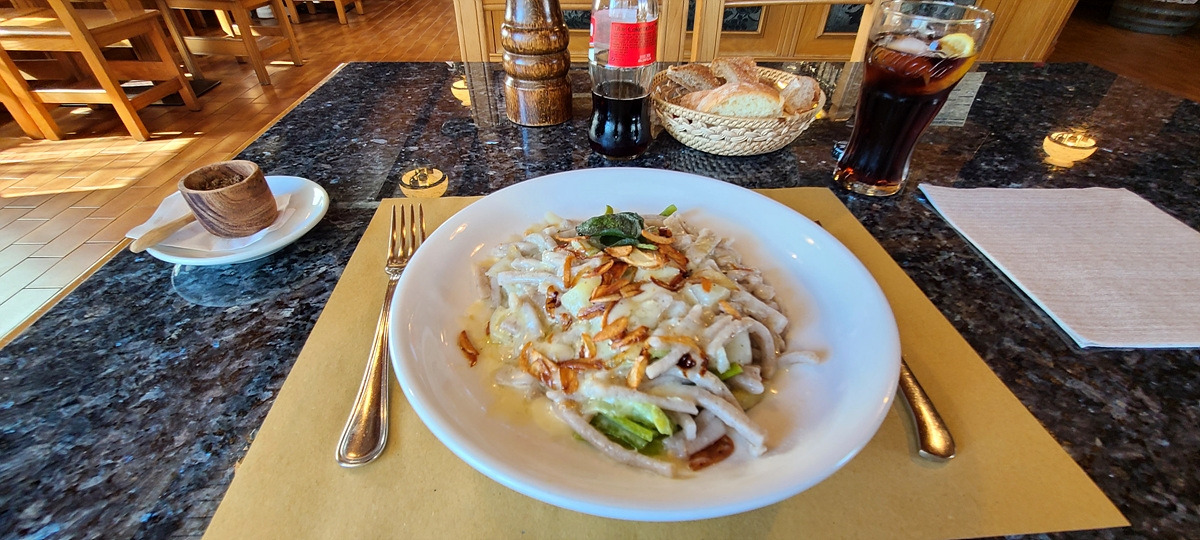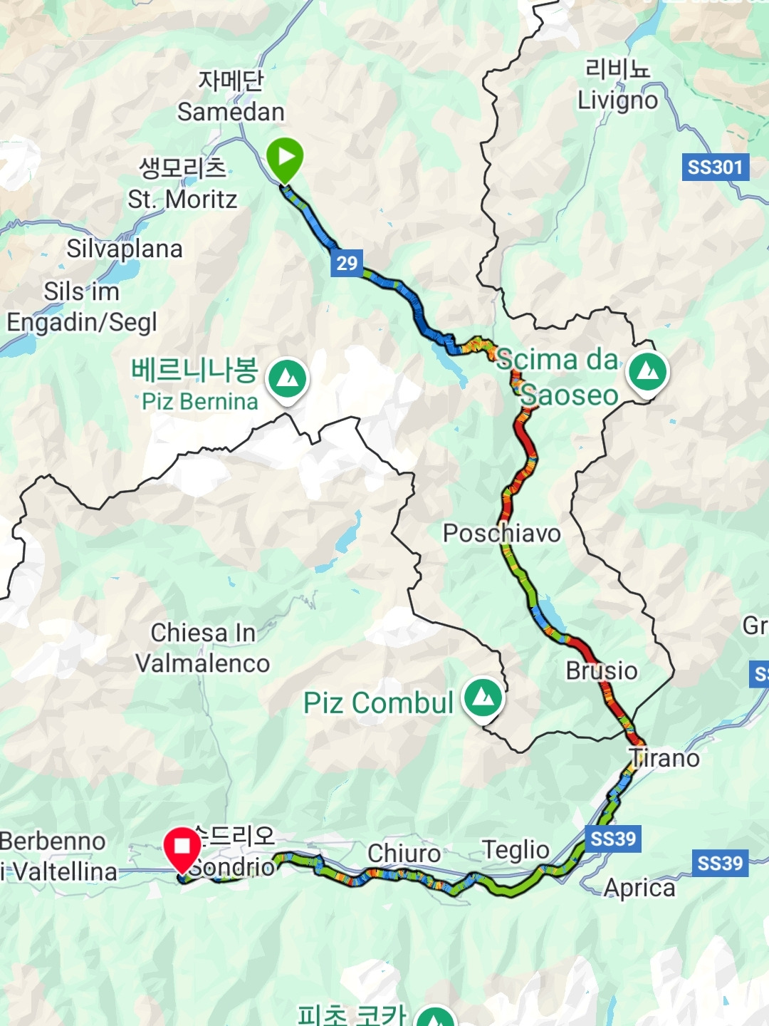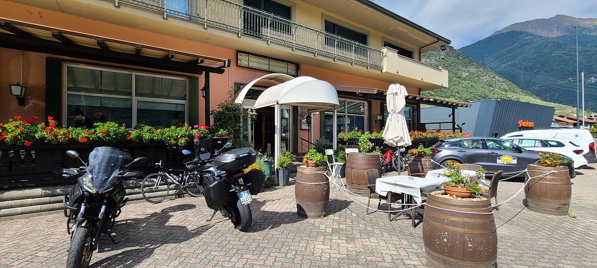 티라노(Tirano)에서 점심을 먹기 위해 SS38 국도를 달리는데 차가 넘모 많다. 우회길도 없이 골짜기를 따라서 주요 도시를 잇는 주 도로니 그럴 수밖에... 이탈리아로 넘어와서 드디어 차 경적소리를 들었다...-_- 그리고 미리 봐둔 식당에서 시그니처 메뉴인 피초케리와 채끝스테이크를 주문했다. 맛있지만 양이 넘모넘모 많아서 겨우 반 정도 먹었다. 여기에다 음료까지 먹어도 어제 스위스에서 먹은 저녁식사의 반값이다. 30km 떨어진 마을의 숙소를 예약하고 마음의 고향 이탈리아에서 자켓을 벗은 채로 다시 출발~