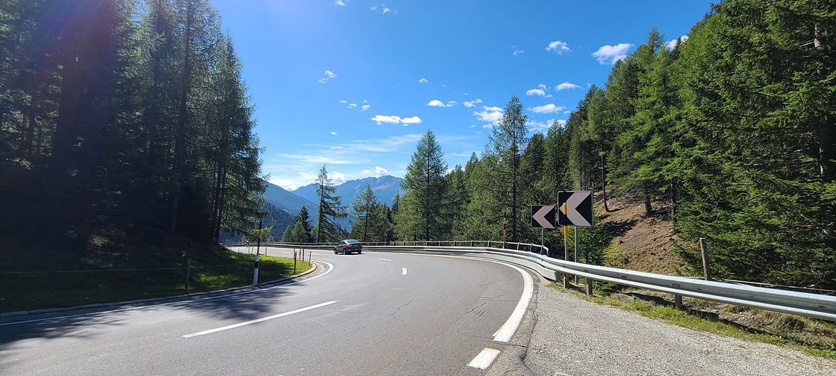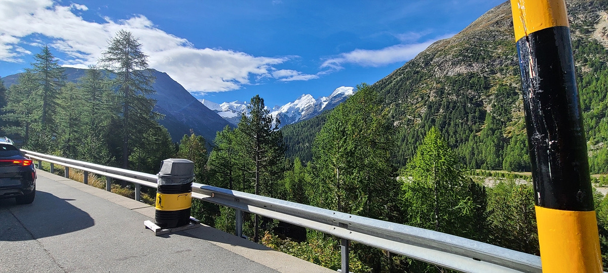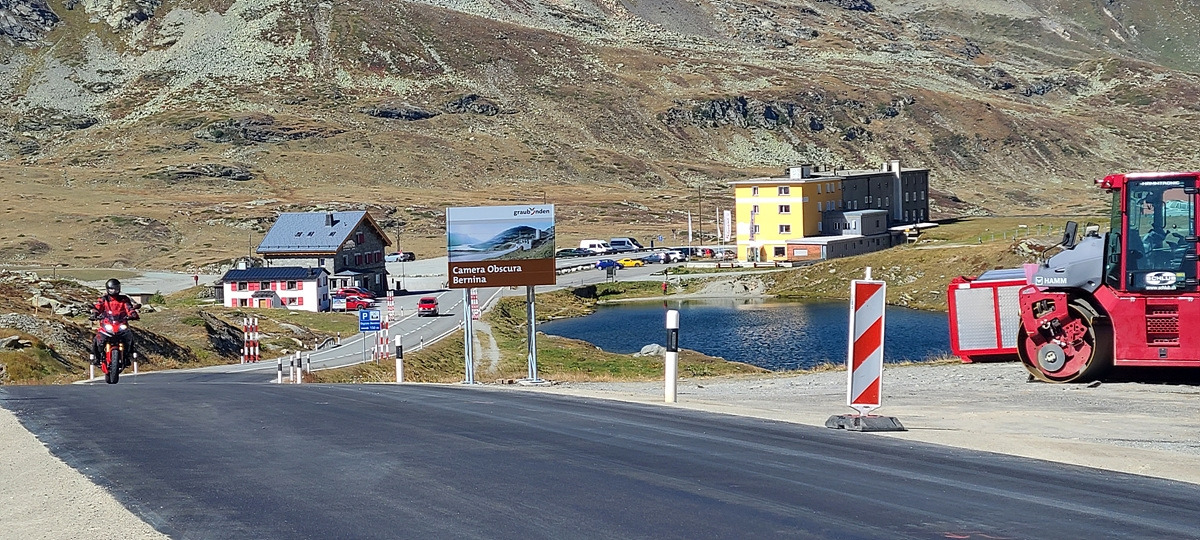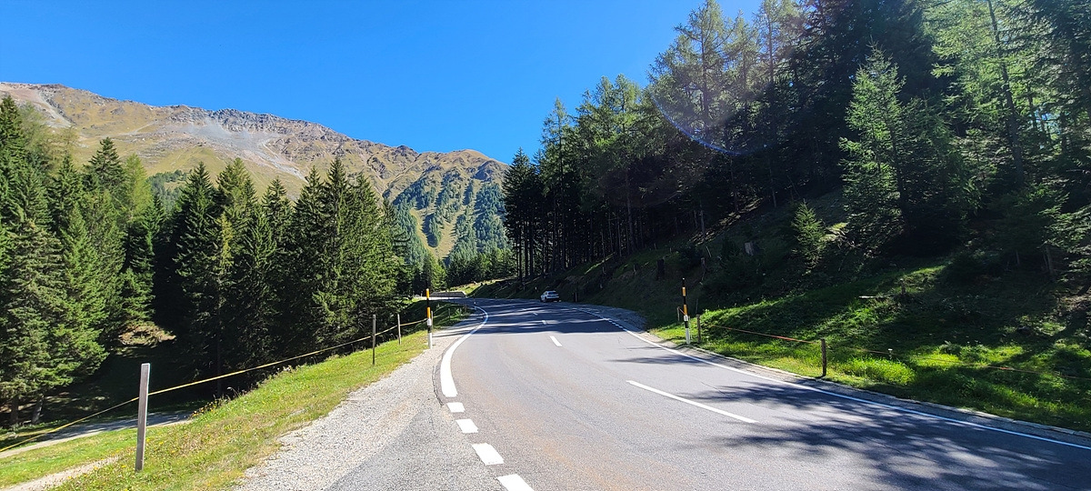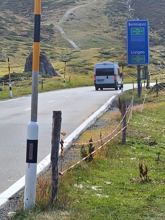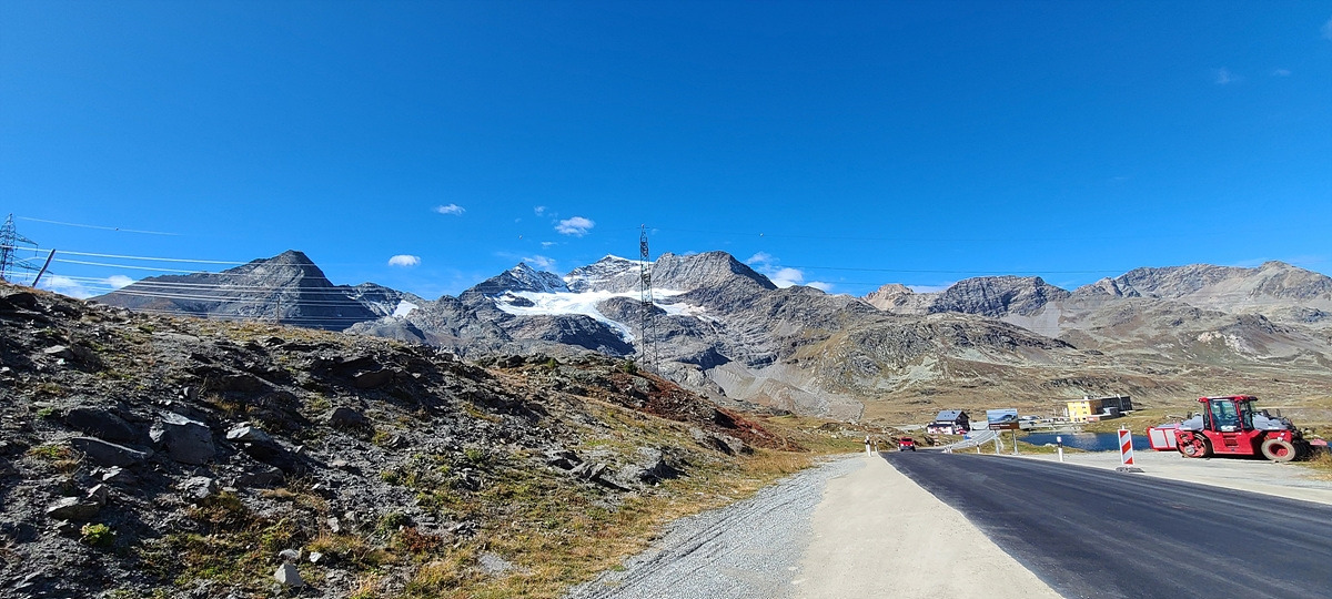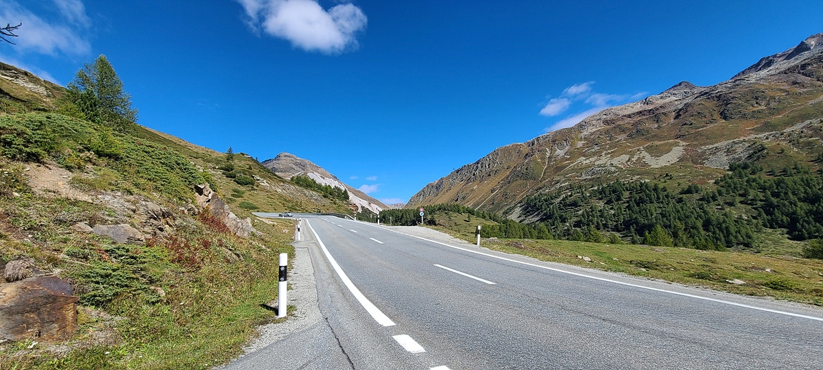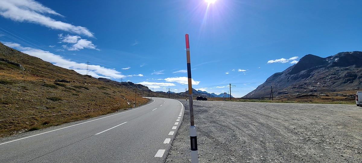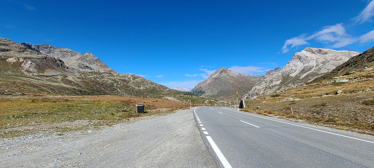 두둔, 이게 뭐지? 베르니나 패스(Bernina Pass)? 나 어제 정상을 지났는데요? 음, 그러니까 알불라 패스는 정상 능선의 시작일 뿐이었나.. 이게 마지막이면 좋겠다. 도로 통제여부가 입구에 표시되어 있다. 신경을 안 쓰고 다녔는데, 아마 눈 오는 겨울시즌이 아니라 항상 오픈되어 있는 것 같다.