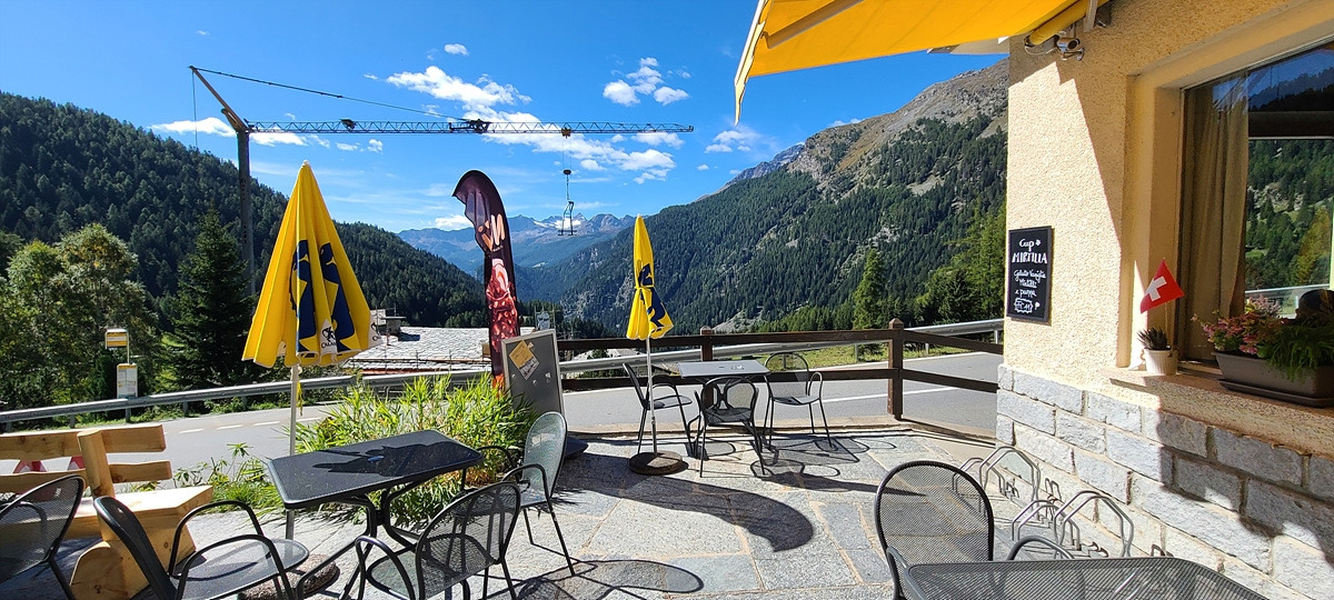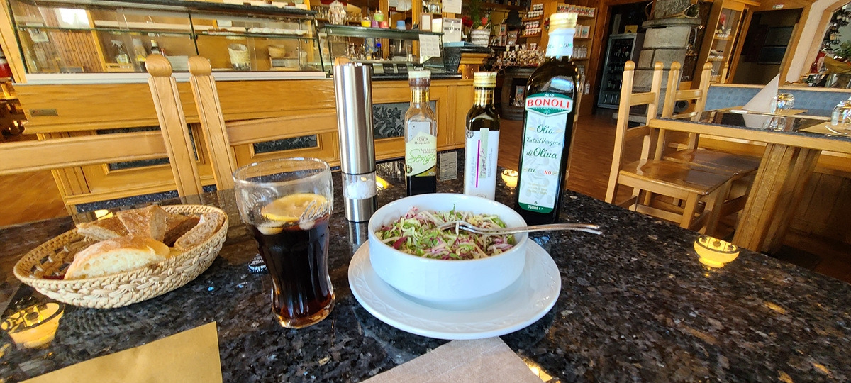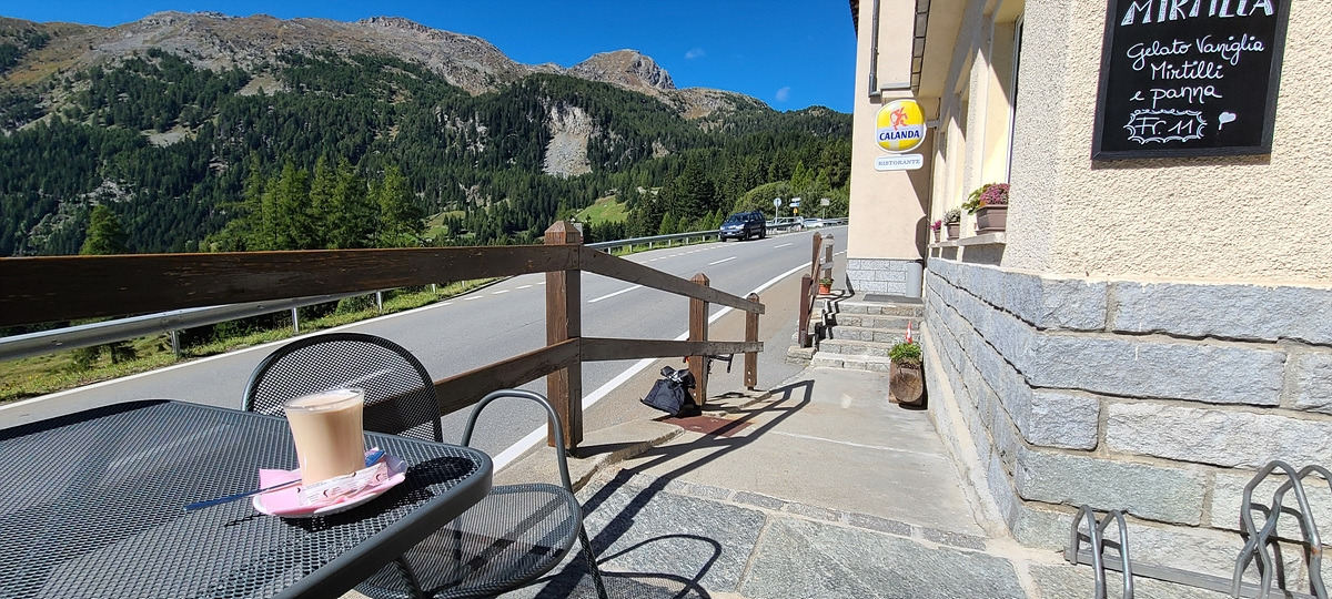 콧물이 계속 나와서 내리막길 중간에 있는 식당에서 라떼마끼야또를 먹었다. 아직 스위스인데 식당 주인은 이탈리아 말을 한다. 이탈리아 국경 부근에 살면서 스위스에서 일하면 개이득일 거라고 계속 생각했는데 아마도 그런 케이스인 것 같다. 테라스에 앉았는데 햇빛이 느무느무 따뜻하다.