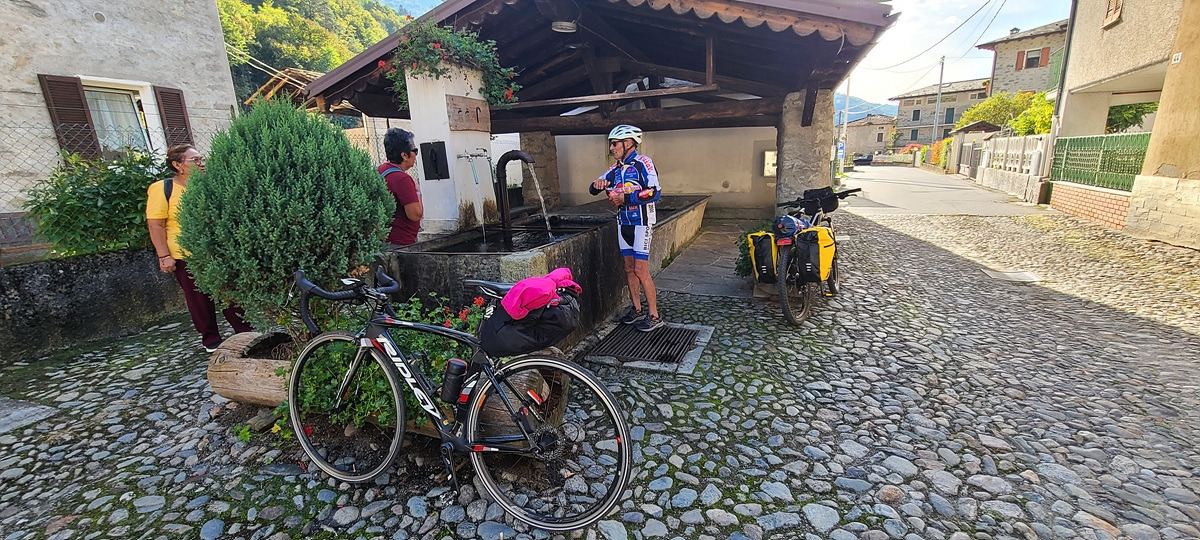 자전거에 패니어를 잔뜩 매단 할배가 '차오~' 하는 걸 보니 이탈리아가 맞긴 한가보다. 할배 뒤를 졸졸 따라가다가 동네 약수터(?)에 같이 멈춰 물을 마시고 물통에도 채우고 있으니 다른 자전거 여행자들도 모두 멈춘다.