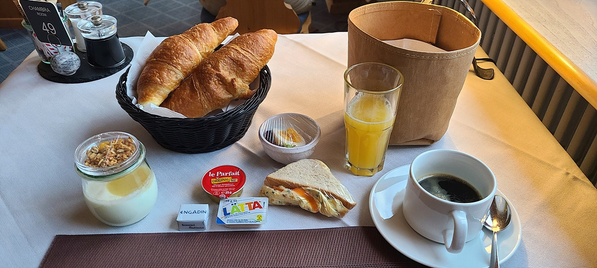 숙소에서 조식을 7시 15분부터 준다고 해서 시간 맞춰 일어났다. 여기도 해발 1,700m 정도 되니 현재 기온이 영상 2도다. 으, 추워... 취리히에서 출발한 이후로 고도와 위도의 콜라보로 콧물이 계속 난다. 어젯밤에는 코가 막혀서 깊게 못 잤는데 아침부터 노란 콧물이 덩어리로 나온다. 바로 옆 쿱(COOP)이 아침 8시부터 오픈한다니까 조식 먹고 신라면을 파는지 가봐야겠다.