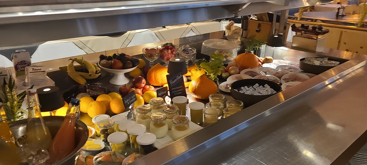 우와~ 이제껏 먹은 유럽 조식 중 역대급 최고다. 오렌지를 직접 짜서 먹을 수 있고 듣도보도 못한 온갖 종류의 햄과 치즈, 시리얼, 수제요거트에 과일까지 진짜 다양한 음식이 있었다.