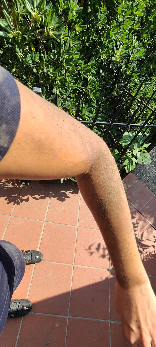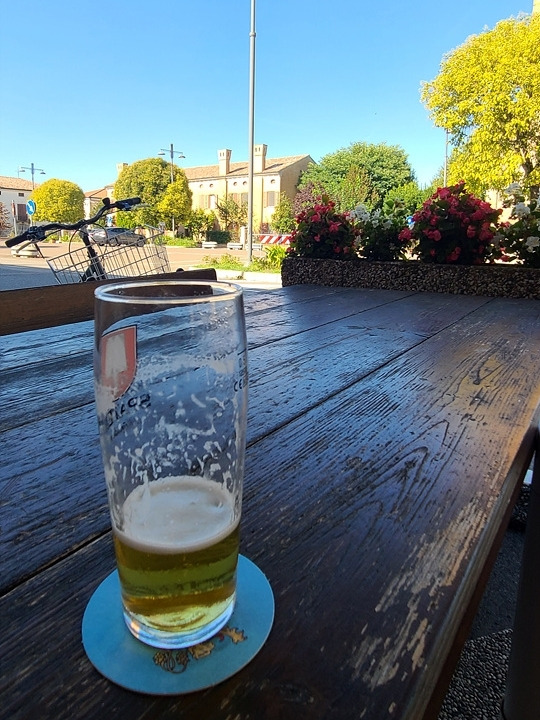 큰일이다. 왼팔에 힘이 잘 안 들어간다. 자전거에 올라타고 내리기가 힘들다. 급기야 마을 입구에서는 그냥 자전거를 끌고 걸어갔다. 도착한 곳은 식당이 아니라 바였다. 먹을게 다양하지 않아서 내츄럴 오렌지쥬스, 제로콕, 초콜릿 크로아상을 먹었다. 존에게 연락하니 걱정가득한 답장이 왔다. 염좌일 수 있으니 노시셉톨이라도 발라보라고 한다. 화장실에서 흙먼지를 씻어내고 계속 마사지도 했더니 좀 나아지는 것 같긴 한데, 일단 좀 기다려 봐야겠다.