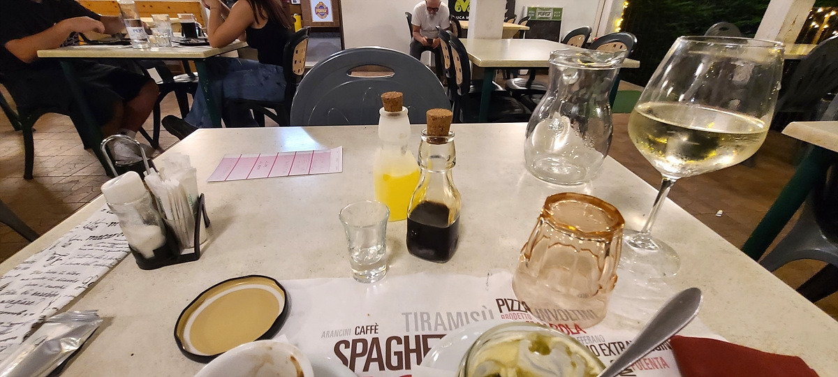 다 먹고, 남은 와인을 마시고 있었더니, 리몬첼로와 갈색 아마로를 가져다 줬다. 후식주로 먹으니 독하게 취기가 오른다. 저녁만 되면 도지는 기침때문에 옆자리 노부부에게 번역기로 '죄송해요 감기에 걸렸어요.'를 보여주니 손사레를 치며 괜찮다고 한다.