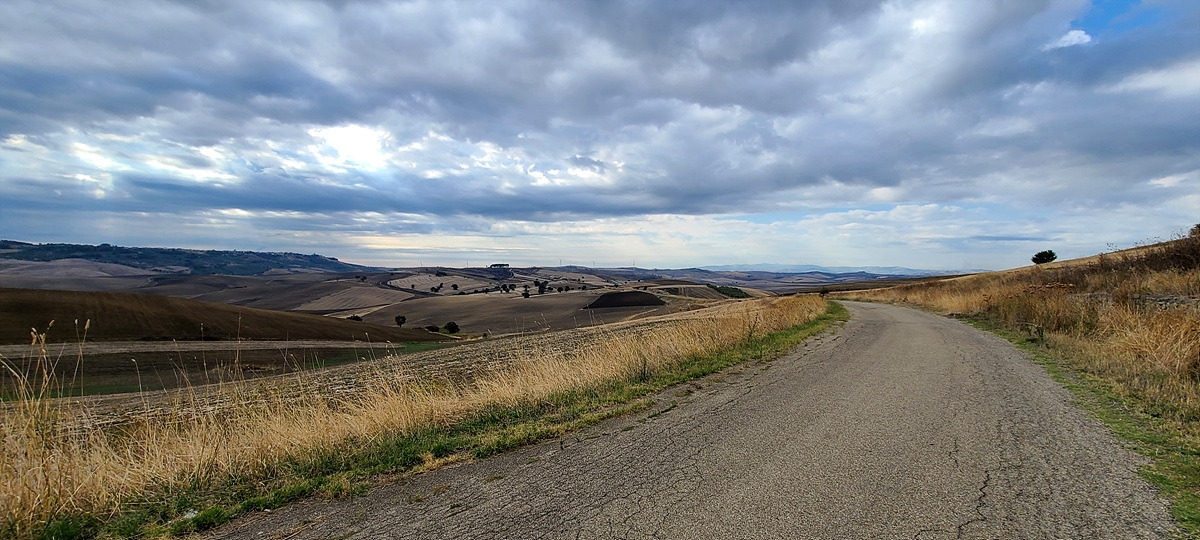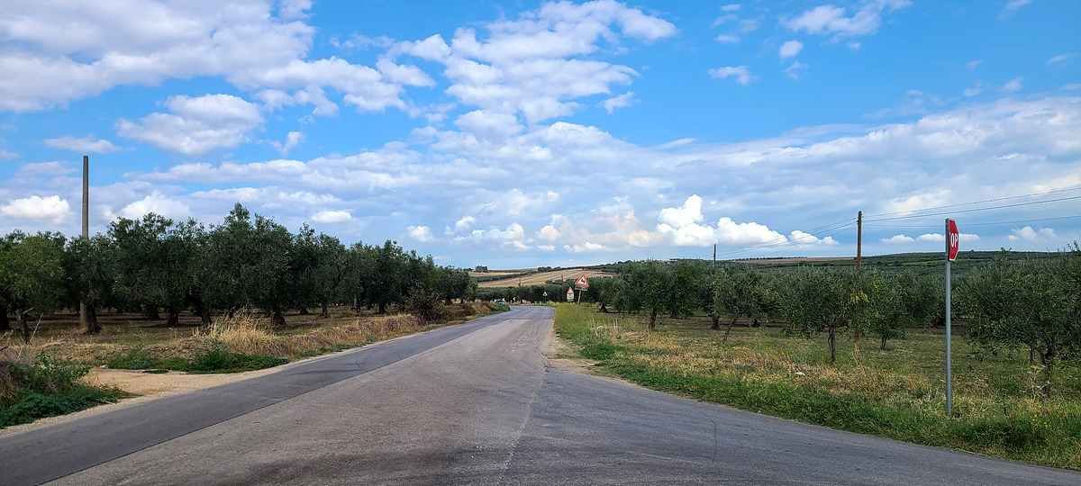 관광객이 없는 동네라 그런가 생각보다 차가 많지 않아서 탈만하다. 그러다가 다들 어디로 빠져버렸는지 차가 아주 없어졌다. 가끔 다니는 농기계만 보일 뿐이다. 큰 산을 끼고 있는 갈가노(Gargano) 국립공원을 우회하기 위해 내륙으로 들어왔는데, 해안만큼은 아니지만 업다운이 꽤 있다.
