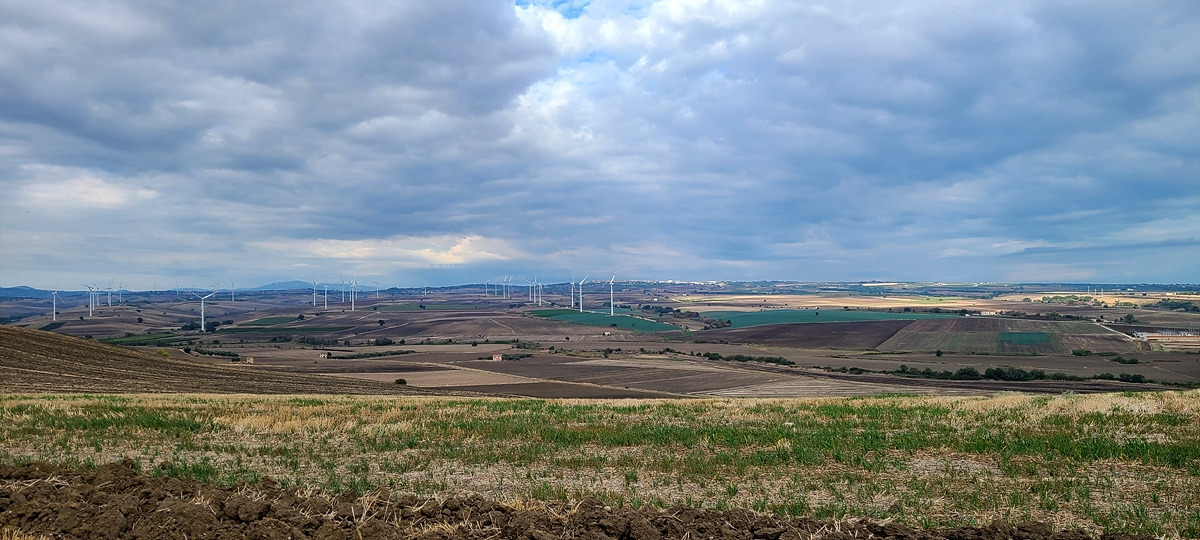 정신없는 산세베로(Sansevero)를 지나서 SP 도로로 빠지니 올리브 나무와 포도밭이 잔뜩이다. 저 멀리 풍력발전기가 보이고, 초록색 무(?) 같은 채소를 잔뜩 심어놓은 게 또 예쁘다.