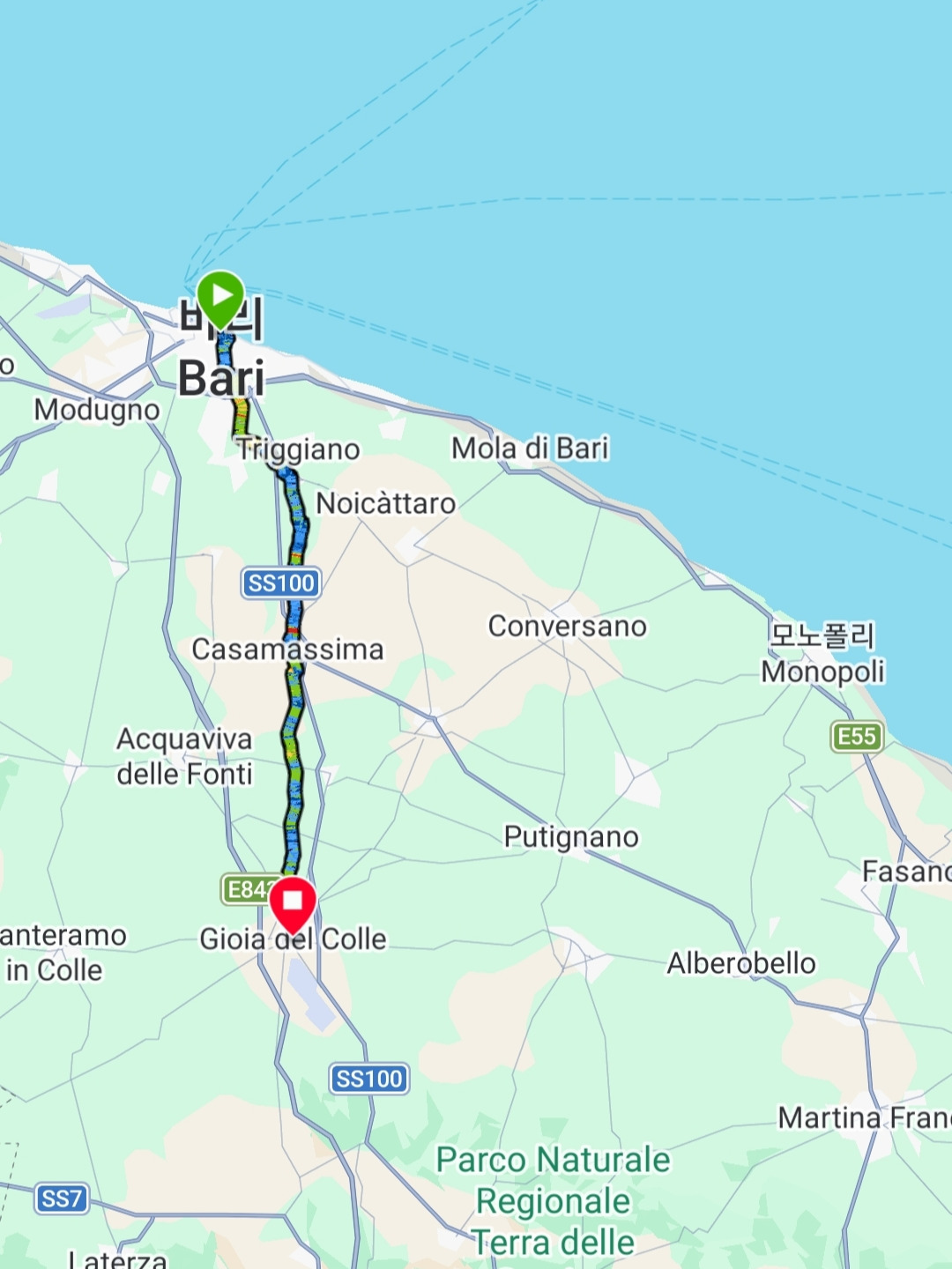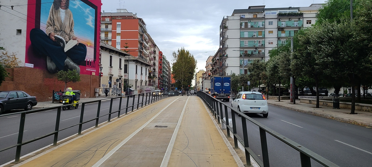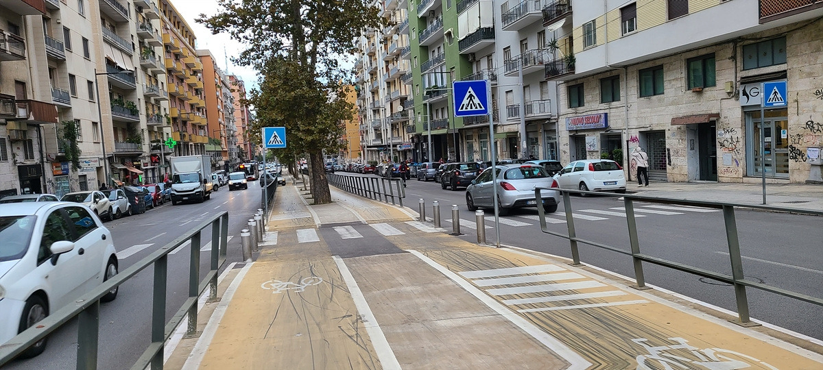 바리를 벗어나는 길에 드디어 자전거 도로를 발견했다. 바르셀로나에서 봤던 것처럼 도로 중앙에 위치해 있었는데, 뭔가 억지로 조성한 듯한 것이 시내를 벗어날 때까지 매끄럽게 연결되지는 않았다. 차도와 자전거 도로를 애매하게 왔다 갔다 했더니 10km를 가는데 한 시간이 넘게 걸렸다.
