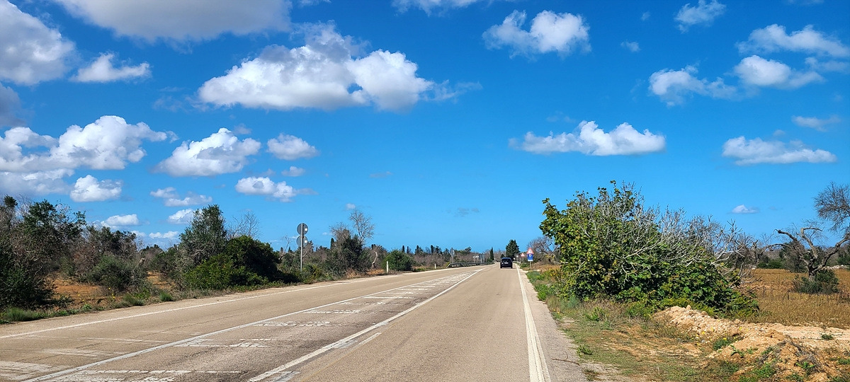 오늘도 맞바람을 뚫고 달려야 한다. 강풍경보를 찾아보니 16m/s의 바람이 불고 있다. 그래도 오늘은 레체(Lecce)에 들어가서 쉴 예정이니 힘을 내서 간다. 바다에 아주 붙어서 가는 길은 아닌데, 오늘은 바람이 너무 세게 부니 차라리 이게 낫다. 육지 안쪽도 바람이 엄청나긴 마찬가지다. 이 바람에도 자전거를 타겠다고 요 며칠 아침마다 썬크림을 바르면서 현타가 좀 왔는데, 오늘도 나와 같은 방향으로 자전거 여행하는 사람들을 보고 있자니 사는 게 다 비슷한 것 같다. 바람은 바람이고 내 갈 길은 가야지..