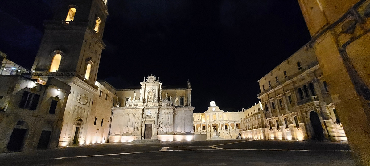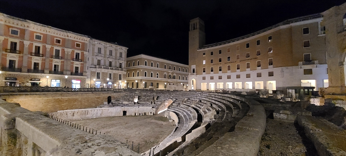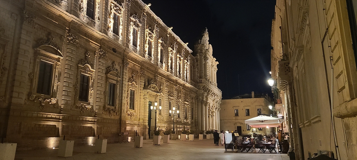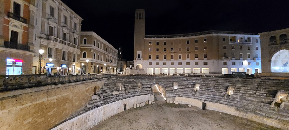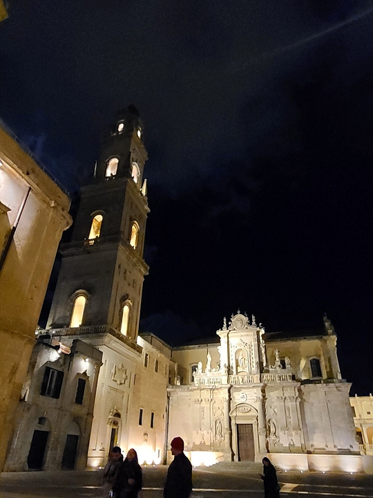 밥을 다 먹고 구시가지로 걸어갔다. 이번에는 술을 마시지 않은 제정신으로 한 번 돌아봐야겠다. 빗방울이 살짝 떨어져서 기온이 낮아졌다. 이놈의 비는 다 온 게 아니었나 보다. 구시가지의 야경은 아름다웠다. 아까 보지 못했던 바실리카 성당과 원형극장을 둘러보고 두오모의 야경도 보니 레체에 오길 잘 한 듯하다.