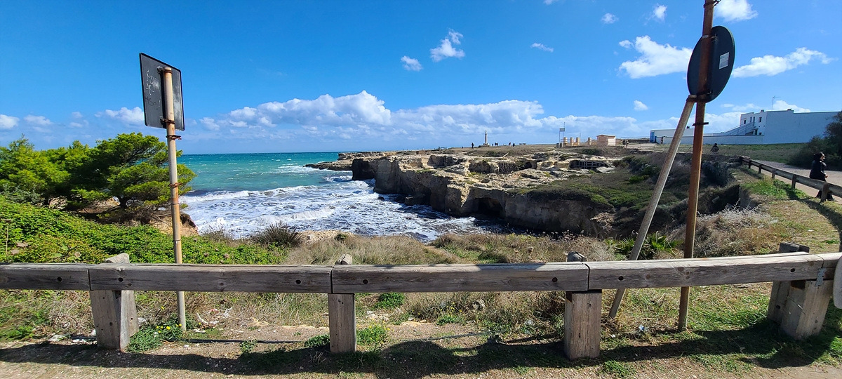 바닷가와 카페가 나오면서 사람들이 몰려있는 동네가 나왔다. 으아, 바다에 붙어서 가니 바람이 아주 장난 아니다. 한걸음 한걸음 힘들게 페달질을 하면서 사람들이 모두 한 곳을 향해 걸어가는 장면을 보았다. 지도를 보니 무슨 동굴과 전경이 유명한 것 같았는데, 바람 때문에 얼른 해안을 벗어나고 싶어서 가보지는 않았다. 무엇보다도 자전거를 두고 안쪽 트레일로 걸어가야 하는 것이 마음에 들지 않았다. 나중에 찾아보니 Cave of Poetry라는 관광명소였다. 이제는 침식으로 인한 안전상의 이유로 물에 들어갈 수 없고, 3유로의 입장료도 생겼지만 아름다운 풍경을 자랑하는 그런 곳을 사진으로 배웠다.^_^