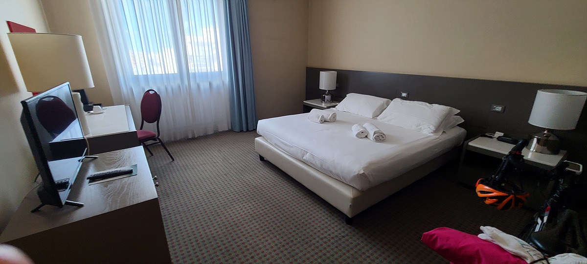 거의 쉬지 않고 달려서 레체(Lecce)에 도착했다. 동굴이 있는 관광지를 지난 후 아무런 마을도 나오지 않아서 쉴 곳이 없었기 때문이다. 오렌지 마멀레이드가 들어간 크로아상과 라떼마끼야또를 먹으며 숙소를 검색했다. 가격과 연식이 좀 있지만 호텔로 가는 것이 나을 것 같다. 오래된 도시는 숙소가 1층에 위치하지 않은 경우가 많아서 자전거를 가지고 계단을 오르기 어렵고, 무엇보다도 체크인을 바로 한 다음 레체를 빨리 구경하고 싶은 마음이 컸다.