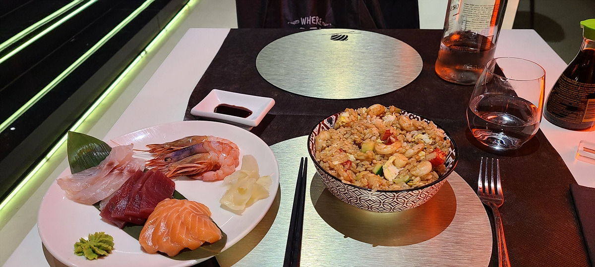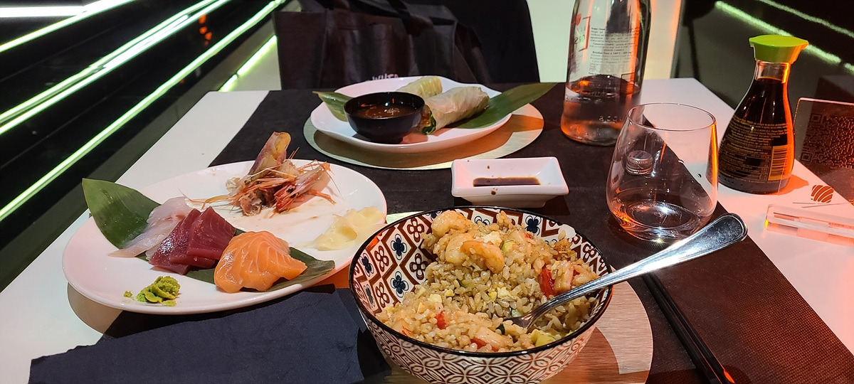 구글 메뉴에서 비빔밥을 보고 간 건데 반응이 영 그랬는지 없어져버렸다. 쌀밥이 먹고 싶어서 온 거라 해산물 볶음밥, 스프링롤, 모듬 사시미를 주문하고 한참을 기다렸다. 벌써 8시 반이라 배고픈디.. 드디어 음식이 나왔는데 맛은 서양의 일식당치고 그럭저럭 먹을만하다. 그런데 볶음밥에 간장이 많이 들어갔는지 너무 짜서 750ml짜리 물을 하나 더 시킨 것까지 총 2병을 다 먹었다. 직원들은 되게 바쁘고 정신이 하나도 없었는데, 테이크아웃과 배달을 많이 하는 식당이라 그랬던 것 같다.