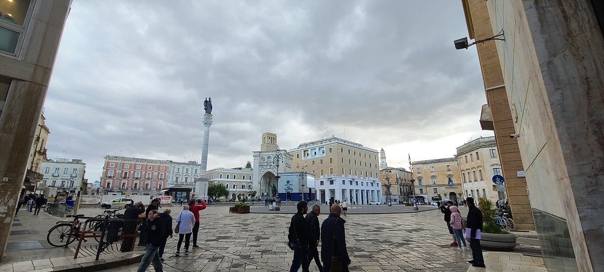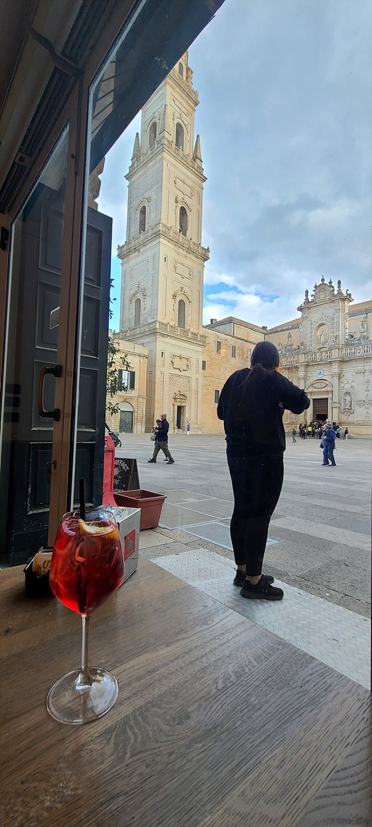 일단 자전거와 짐을 두고 다시 나왔다. 구시가지로 슬슬 걸어가는데 하늘이 흐려진다. 대단한 레체성 안에도 들어가 보고, 큰 광장을 지나 두오모 성당으로 가서 그곳이 보이는 바에 앉았다.