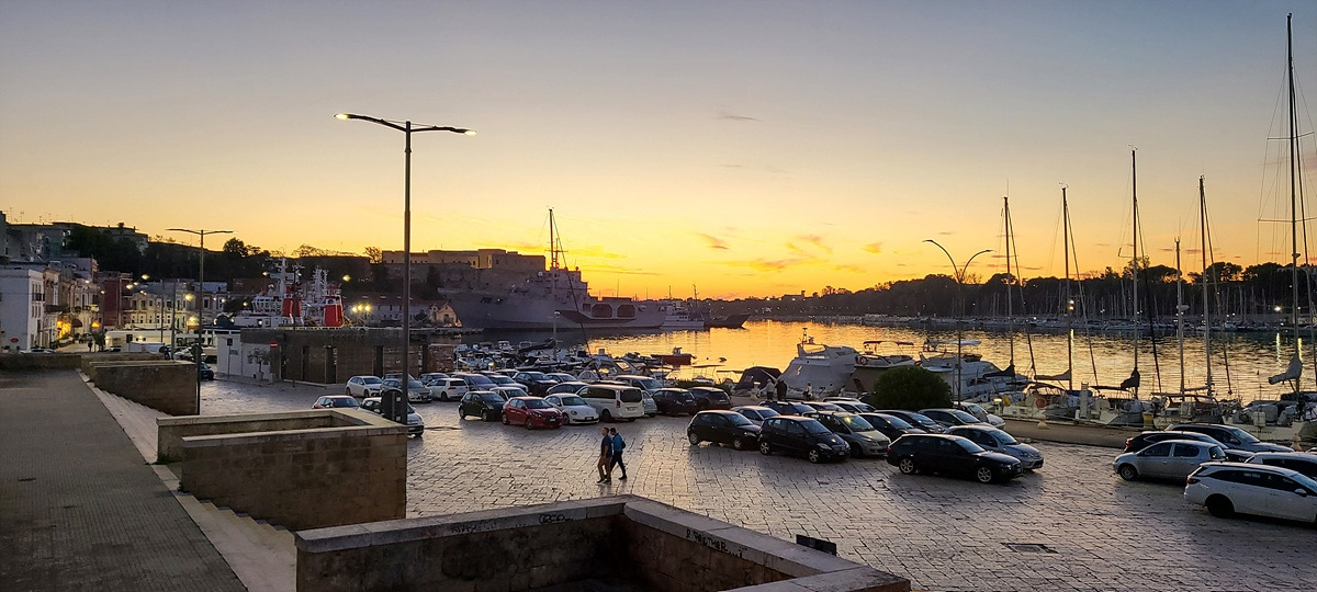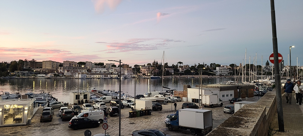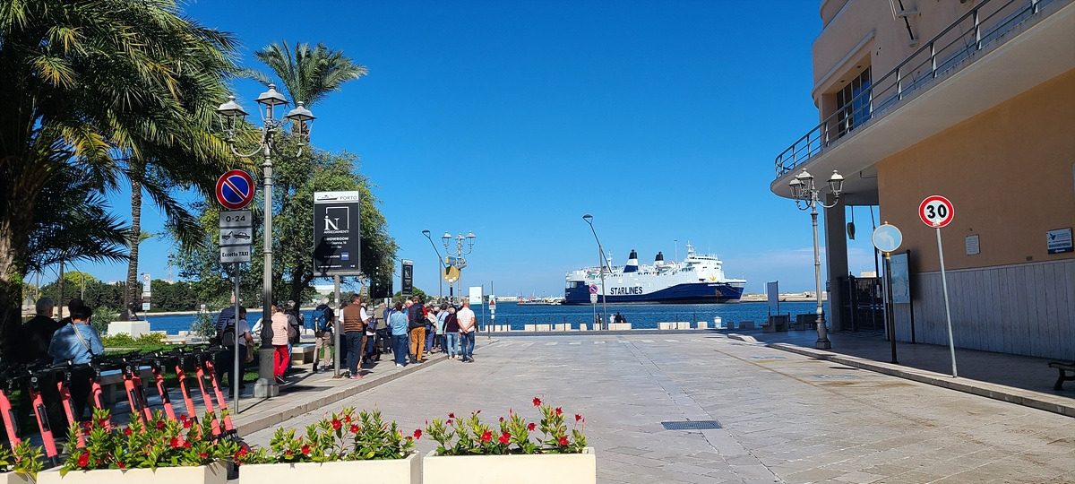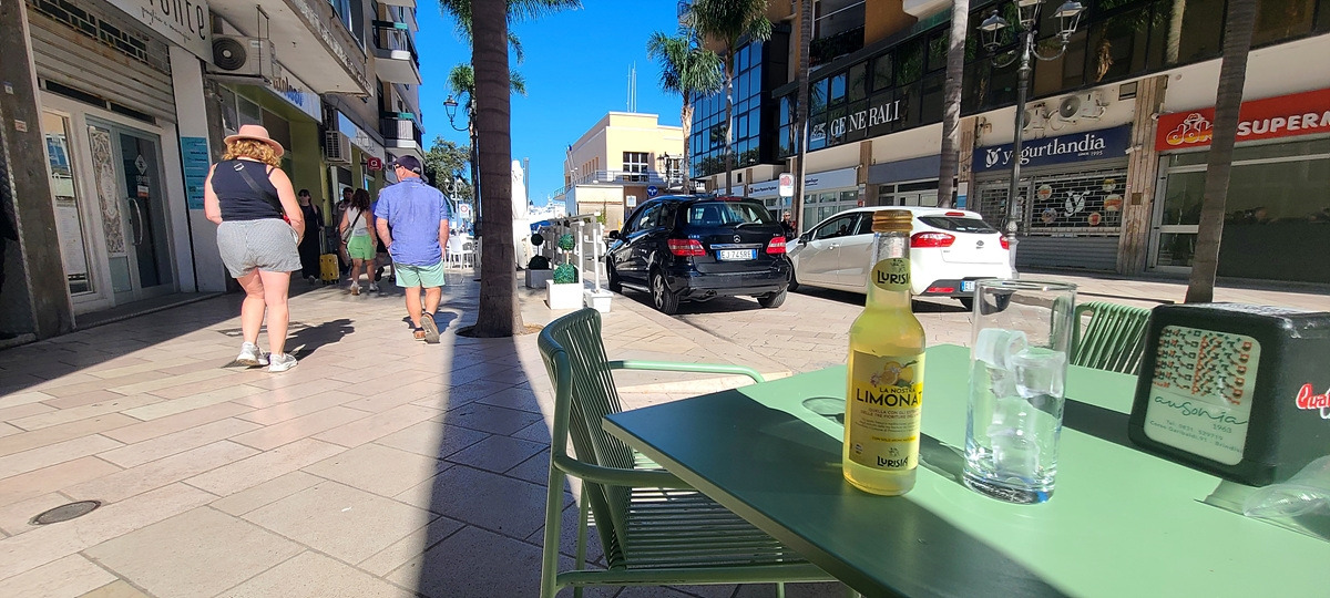 브린디시(Brindisi)에 도착하니 바다에 큰 크루즈가 떠 있다. 어느 카페의 테라스에 앉아서 라떼마끼야또와 작은 햄치즈빵 두 개를 점심으로 먹고 숙소를 예약했다. 해가 따뜻해서 정면으로 맞고 있자니 온몸에 온기가 돌았따. 리모네타라는 새로운 레몬소다도 마시며 여유를 즐겼다.