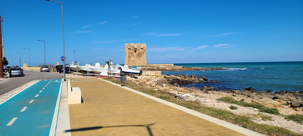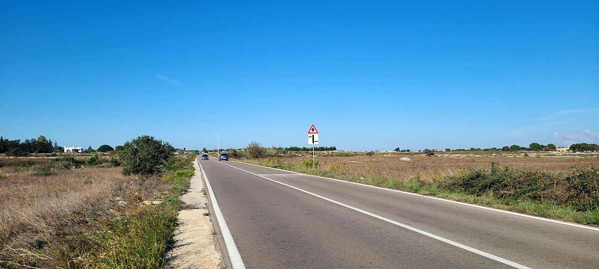 어제 레체(Lecce)로 들어왔던 공항 옆길이 괜찮아서 다시 그 도로를 타고 동부 해안으로 나갔다. 레체 공항은 수년 전부터 이미 운영을 하지 않아서 차들은 거의 옆의 큰 도로를 이용하고 여기는 차들이 뜨문뜨문 다녀서 노면도 좋다. 어제 강풍경보가 종료된 이후로 확실히 바람이 줄긴 했다. 며칠간 누가 뒤에서 끌어당기는 느낌이었는데 오늘은 그래도 참을만한 맞바람이다. 가는 길은 바다가 거의 보이지 않지만 차라리 이게 낫다. 게다가 오늘은 자전거 여행자 부부, 동네 로드 오빠, 차 운전하는 아저씨까지 모두 인사를 잘해줘서 입가에 미소가 떠나지 않는다.