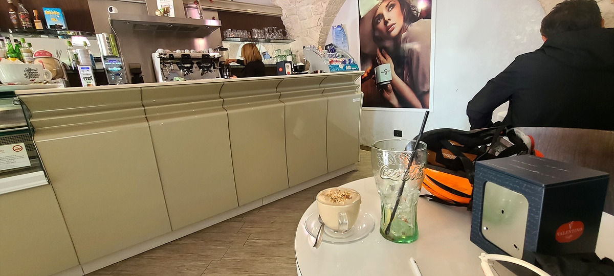 페페가 들러보라고 추천해 준 로코로톤도 (Locorotondo)에 도착해서는 영업 중인 카페를 찾느라 애를 먹었다. 지도에 나온 곳을 찾아가도 모두 문이 닫혀 있길래 젤라또 가게에 겨우 들어가서 레몬소다와 코카제로를 주문했다. 오늘은 날씨가 더워서 빨대로 2-3번 흡입하면 음료가 없다. 그래서 커피 그라니따를 추가로 먹었는데, 얼음은 거의 없이 진하게 녹아있는 아이스크림 맛이었다. 젤라또 가게라 그런가 이게 제일 맛있다. 다 먹고 나오니 바람이 제법 차가워졌다.