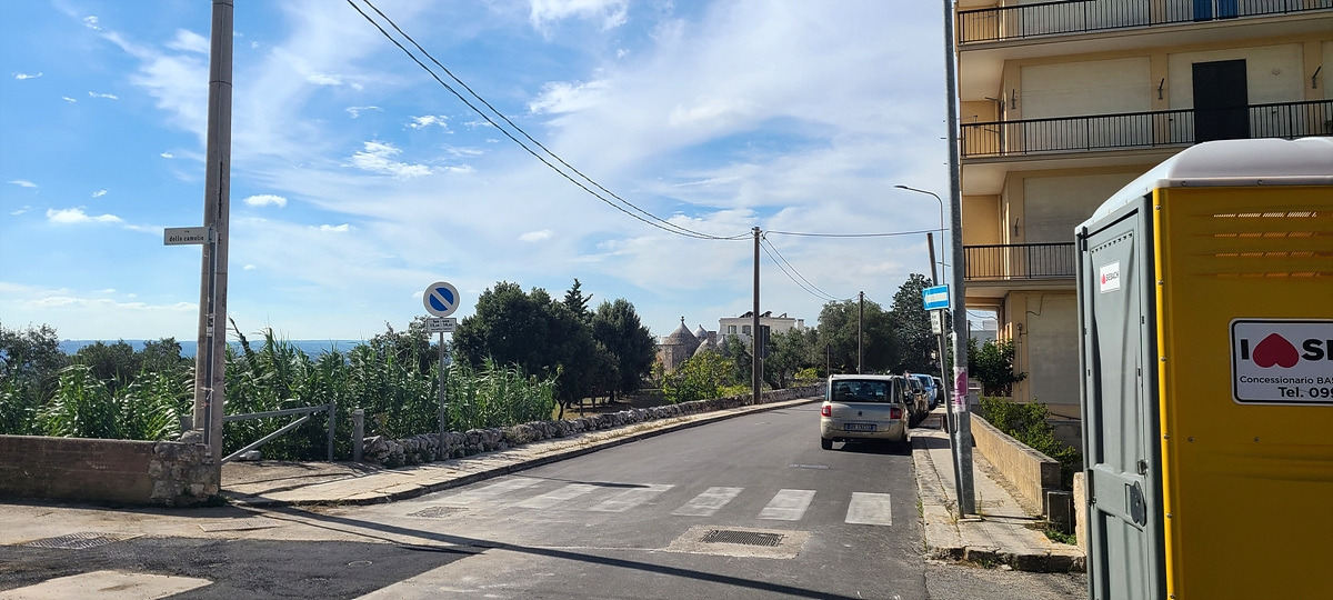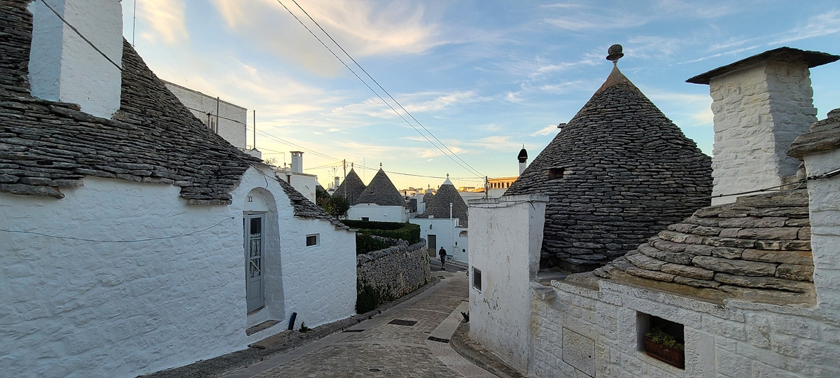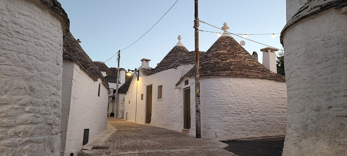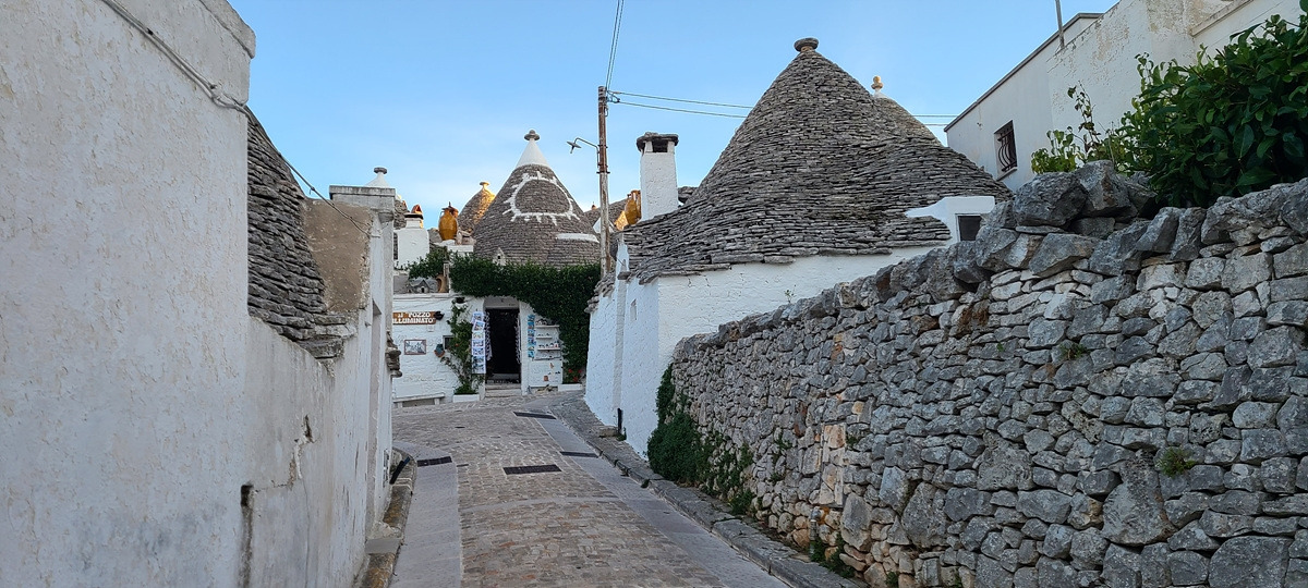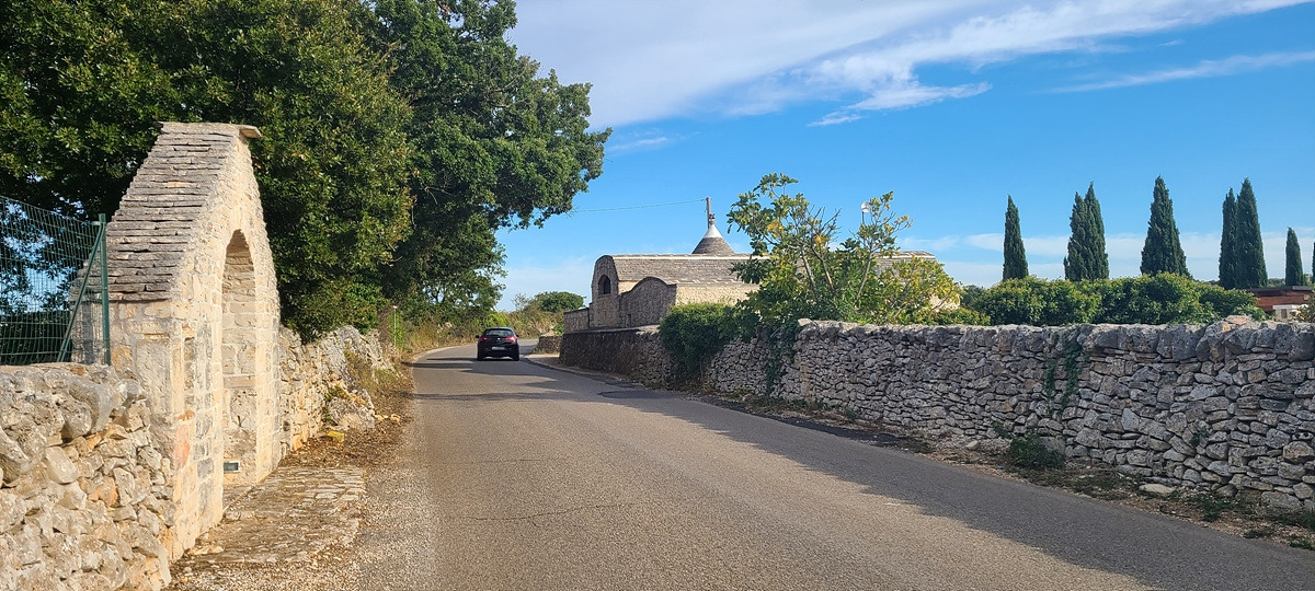 알베로벨로(Alberobello)는 트룰리라는 고깔 모양의 회색 지붕에 하얀 벽으로 된 건물이 유명하다. 알베로벨로로 가는 길은 SS 도로라서 옆의 샛길을 탔는데 군데군데 이미 트룰리가 보이기 시작한다.