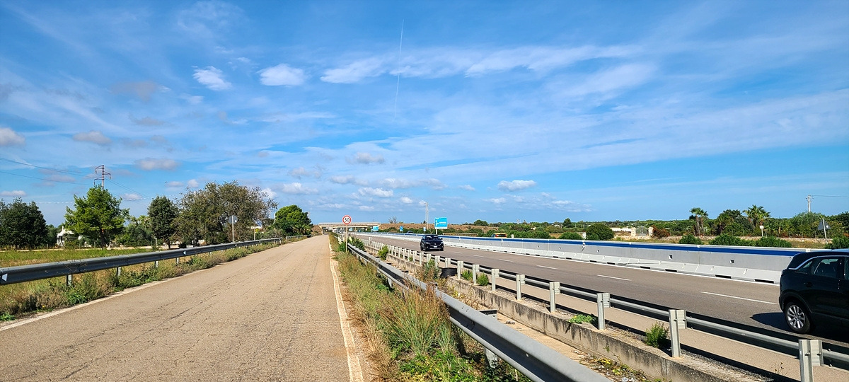 오스투니(Ostuni)에서 벗어나는 길도 가파른 업힐을 올라가야 했는데 아주 좁은 일방통행 도로라 뒤에 자꾸 차가 밀려서 그냥 끌고 갔다. 지나가던 아저씨가 끌지 말고 타고 가라고 했다. 아저씨가 타보세요...