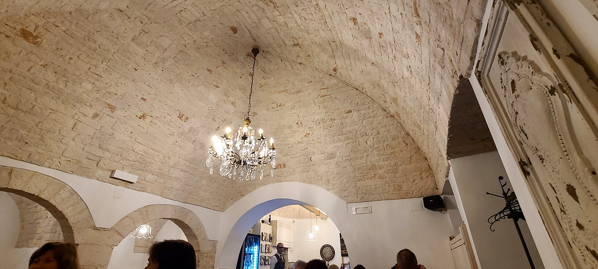 지나가다가 우연히 막 열고 있는 식당을 들어갔다. 다들 나처럼 식당 여러 군데를 들렀다 왔는지, "N명이고요, 예약은 안 했어요. 식사할 수 있나요?"라는 말을 했다. 나도 들어가서 부라타 치즈, 홈메이드 파스타, 안심 스테이크를 주문했다. 앉아서 음식을 기다리는 동안 트룰리로 지어진 식당 내부를 살펴보니 왠지 흥미로웠다.