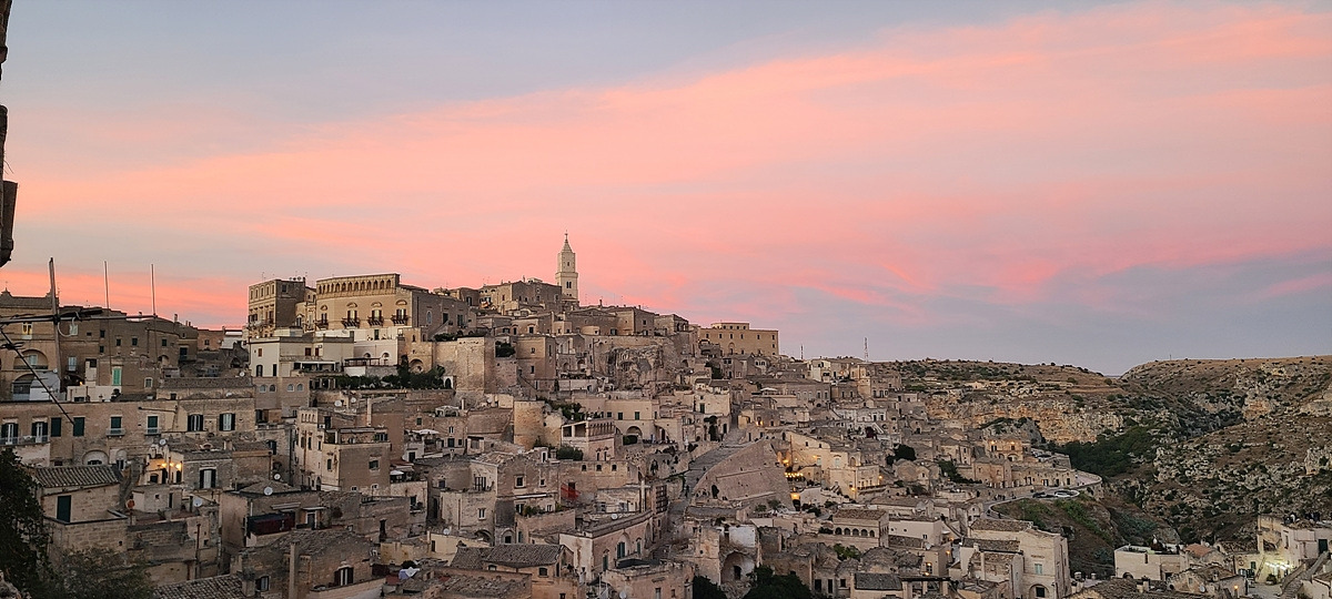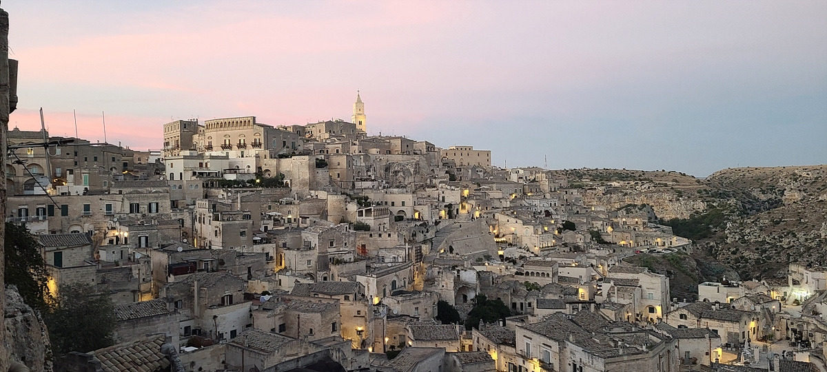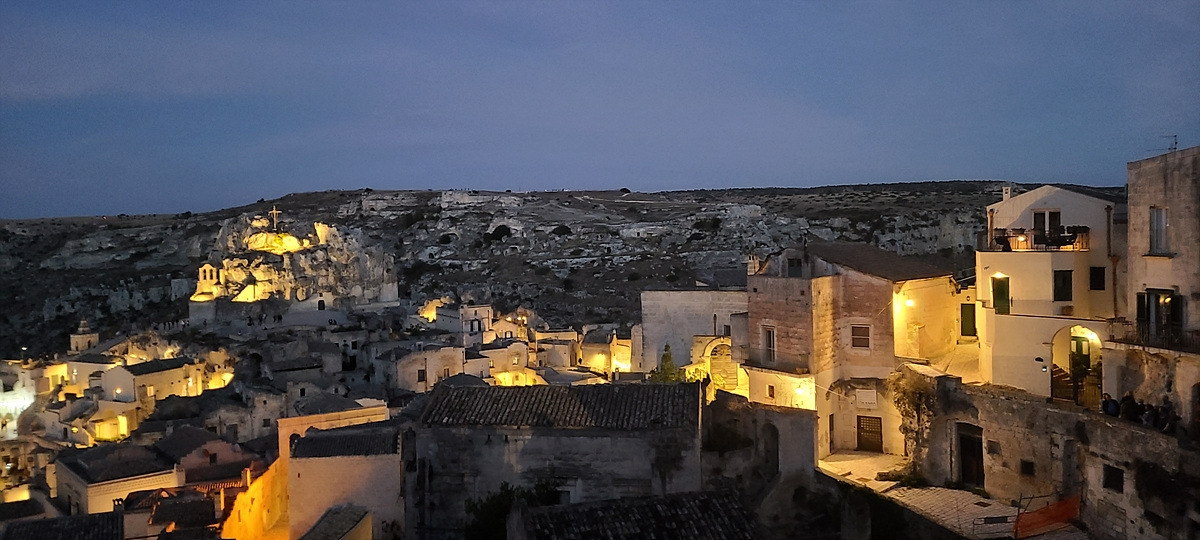 오랫동안 이곳에 머물고 싶어서 사과파이와 라떼마끼야또 한 잔을 추가로 주문했다. caldo한 커피가 freddo해질 때까지 나는 계속 앉아있었다. 마테라의 낮, 노을, 밤을 모두 보고 왔다. 그리고는 단돈 9유로를 지불했다. 마침 전망대로 유명한 지점 바로 옆이었는데, 아주 편하게 앉아서 모든 걸 지켜봤다.