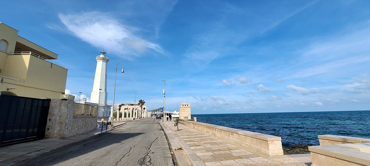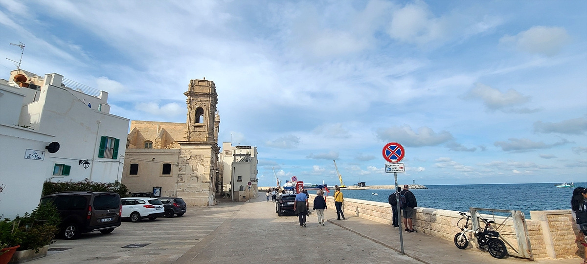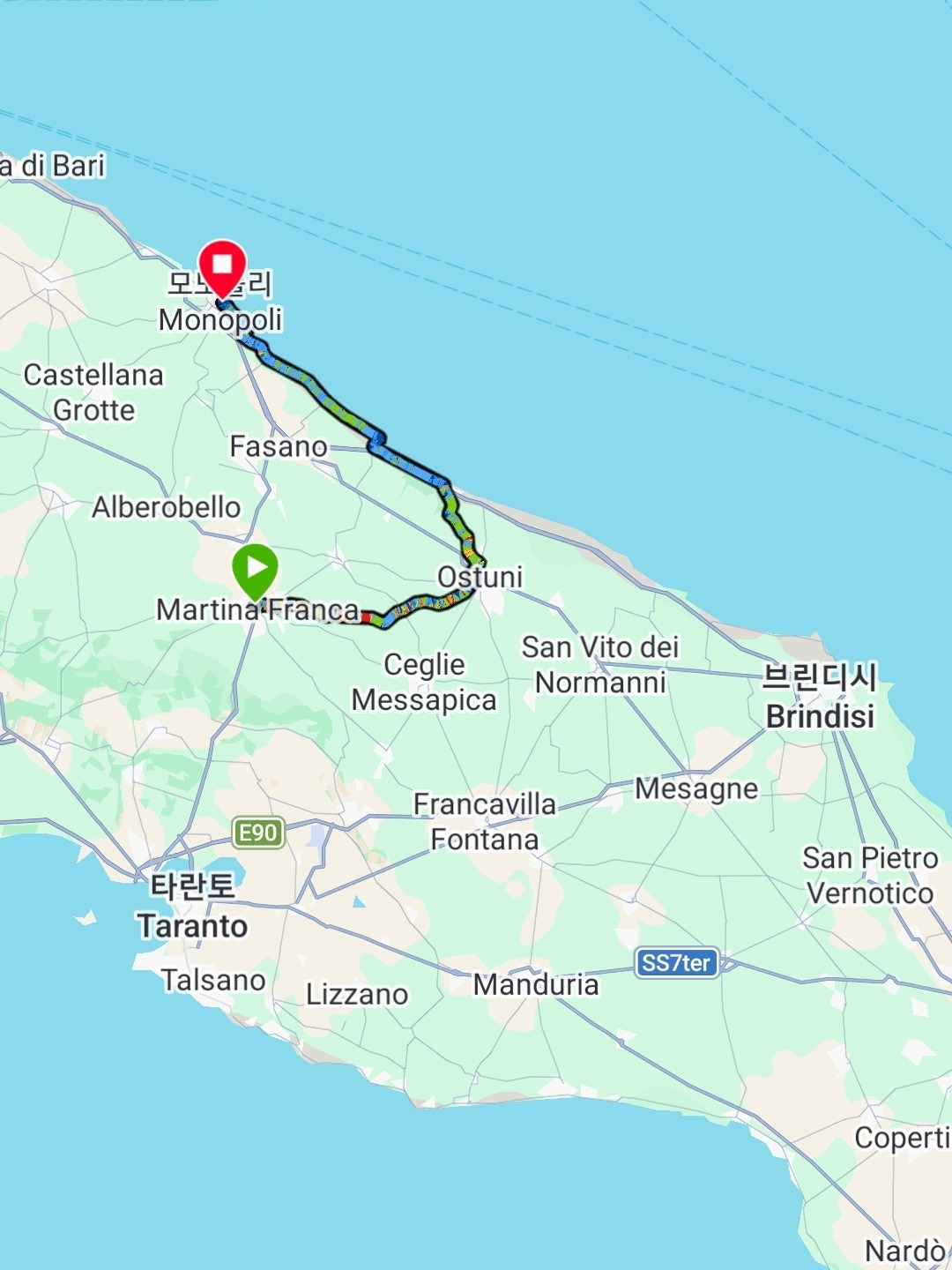바다로 나오니 맞바람이 느껴지지만 지난주의 강풍에 비하면 아주 보살이다. 그래도 날씨가 맑으니 다행이다. 모노폴리(Monopoli)에 진입할 때는 해안으로 에둘러서 들어가니 차가 많지 않아서 다행이었다.