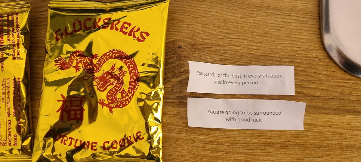 세탁기가 있는 숙소를 우선순위로 선택했기 때문인지 오늘은 조식이 포함되어 있지 않다. 어차피 바에서 먹을 수 있는 커피+빵 쿠폰을 주는 거라면 차라리 내가 양껏 사 먹는 게 낫다. 대신 커피머신과 토스트 비스킷이 간단하게 있었는데, 이걸 아침식사라고 우기지 않는 게 좋았다. 어제 식당에서 받은 포춘쿠키 두 개를 까서 함께 먹었다. 행운의 메시지는 장사하는 곳에서 주는 거라 당연히 좋은 말만 쓰여 있다.